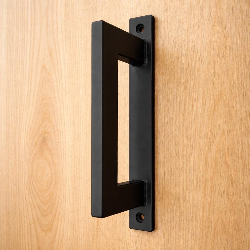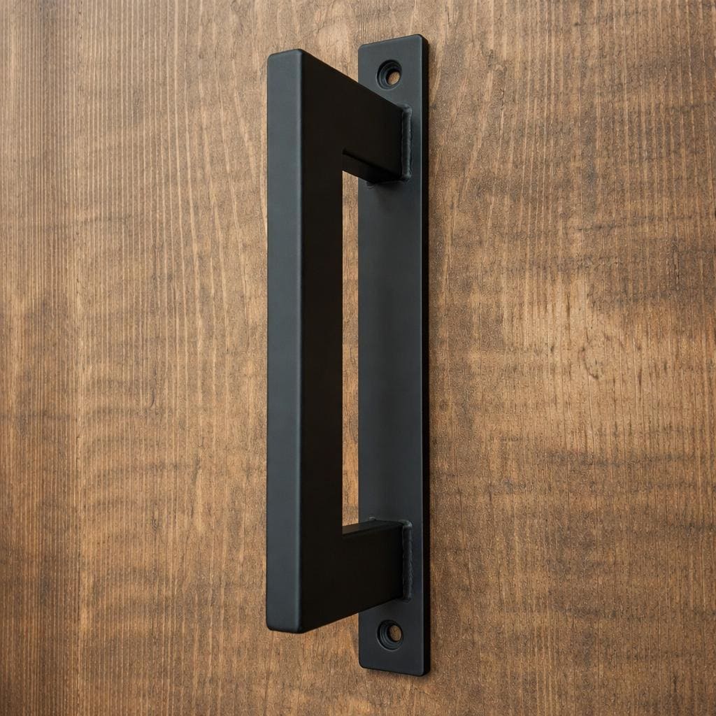 A tough, industrial style pull without the extra bulk of a traditional barn door handle.