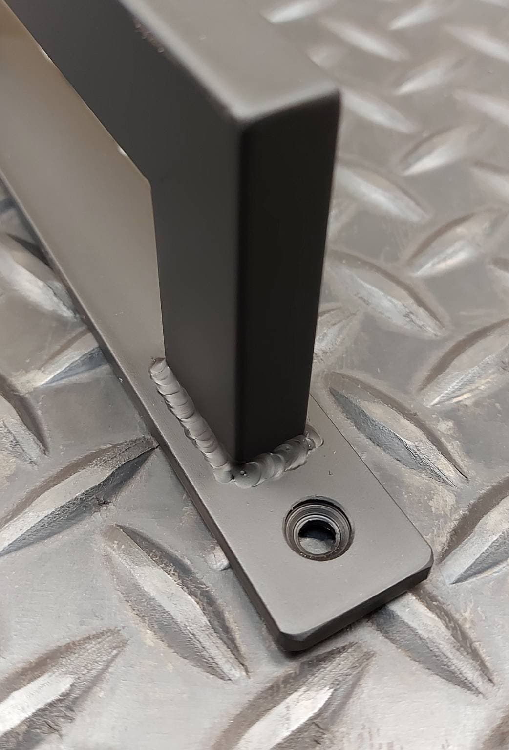 This door handle is made of 1/2" x 1" rectangle steel tube and will stand up to any punishment you could throw at it. The welds are ground clean and smoothed. Once it's finished, the whole piece gets a coat of clear to bring out the natural beauty of the steel. Another option is to paint the handle flat black for a refined, matte finish.