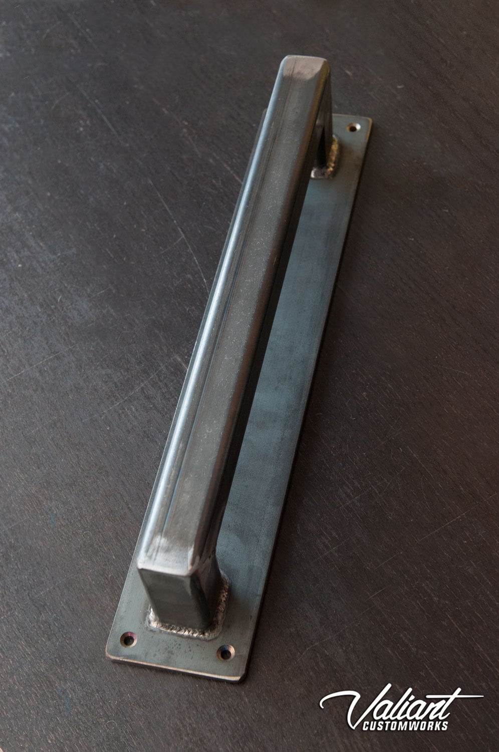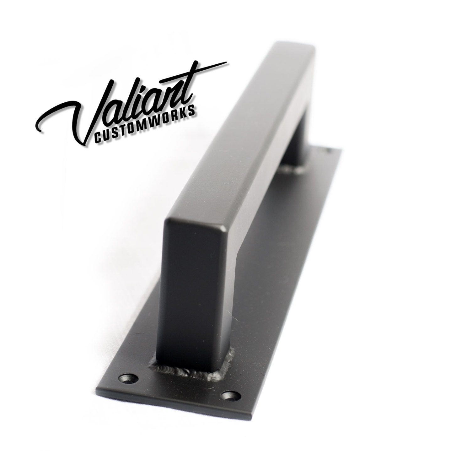 This barn door handle is made of structural grade 1.25" square tube and will stand up to any punishment you could throw at it. Welds are ground clean and smoothed. Once its finished, the whole piece gets a coat of clear to bring out the natural beauty of the mill-scale steel. Excellent for commercial/exterior use. They can also be painted. Shown in the photo is a 16" unit.