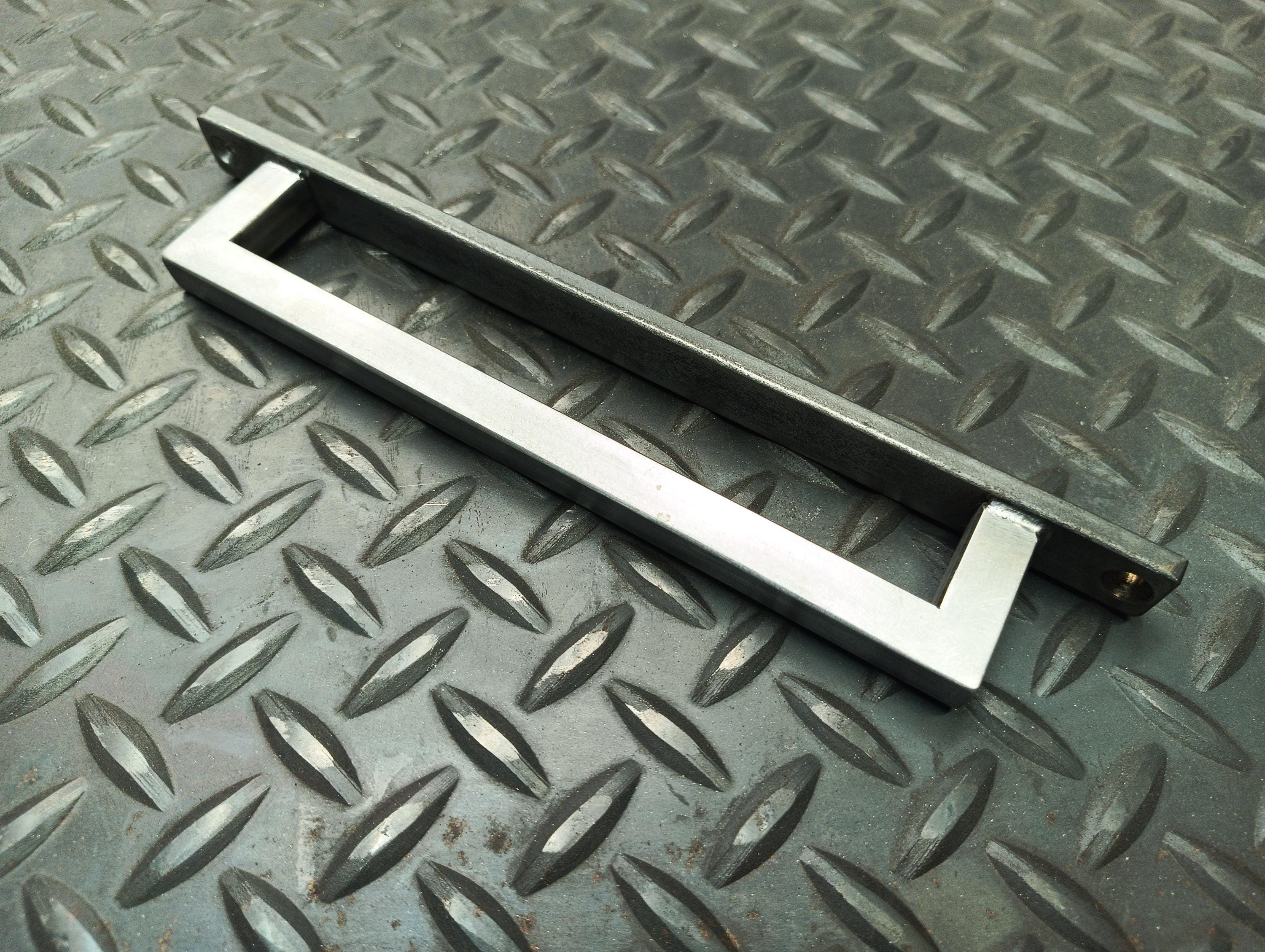 Barn Door Handle made with Rectangular Steel Tube and Flat Steel Backing Plate