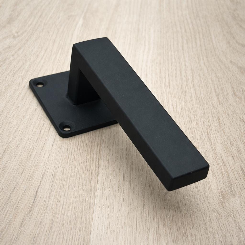 Made of hot rolled steel - 2-1/2" x 3/16" backing plate, 1" x 1/2" rectangle tubing posts, capped, welded and blended.