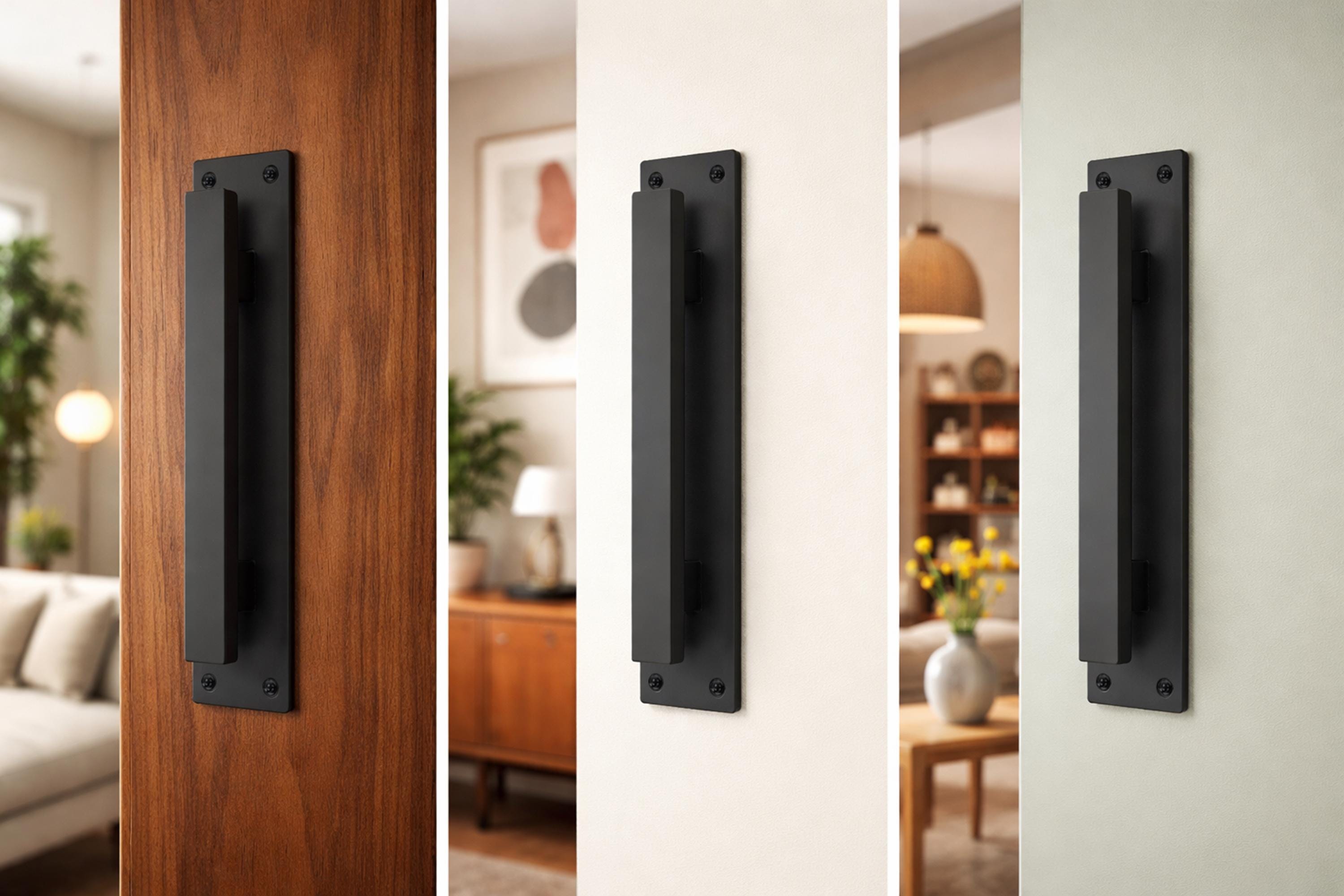 A tough, industrial style pull without the extra bulk of a traditional barn door handle.