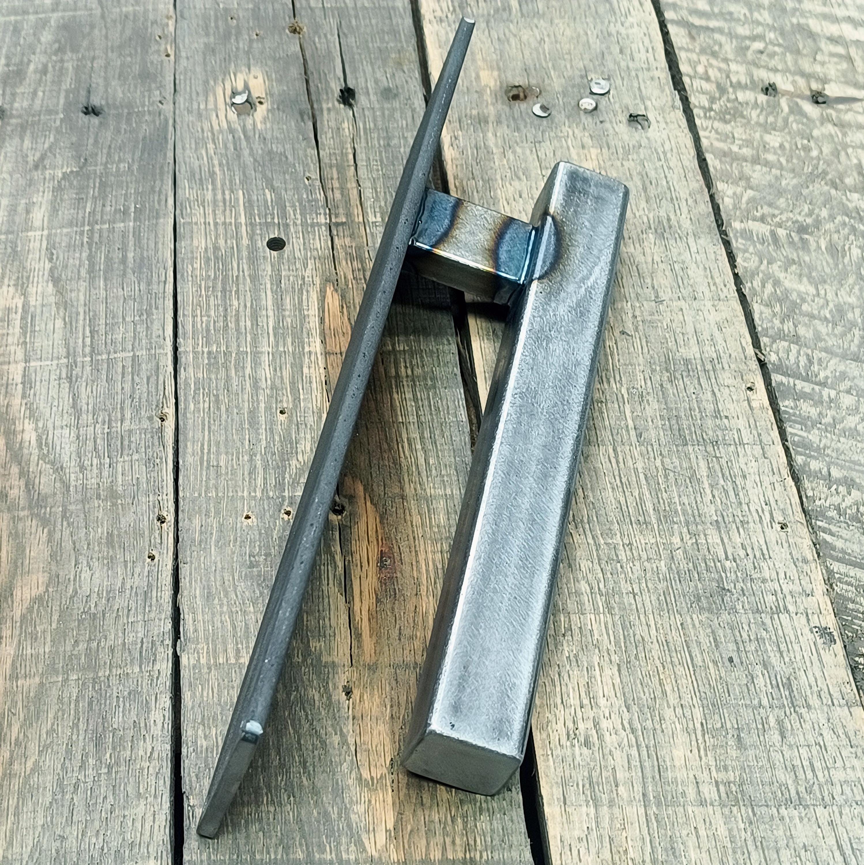 Item purchased for our firewood box at Lake Tahoe. It is extremely well made, simple yet rugged in design and perfect for the task of opening very heavy hinged doors. The raw steel is beautiful but sealed with a clear coat to better withstand the brutal winters that we experience. I was pleased with how well it was packed for shipping, and I would certainly utilize Chris again in the future for my custom metal needs.