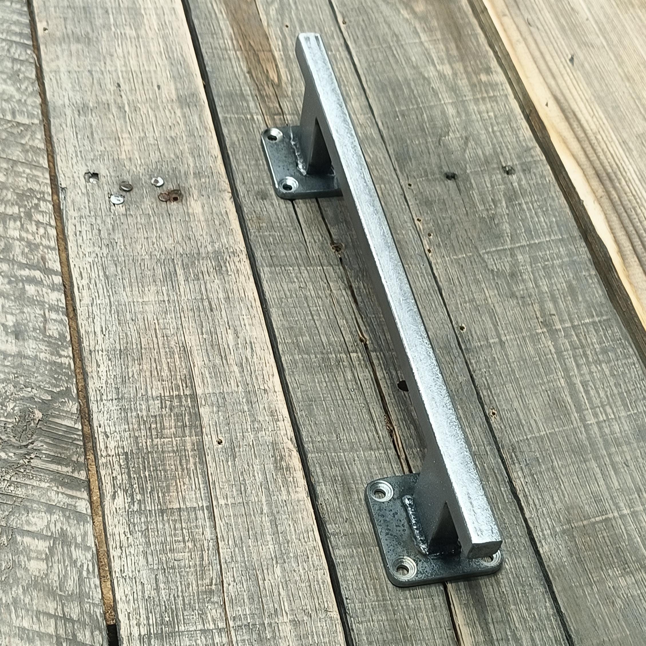 These industrial door handles or drawer pulls are made of 1/2" square tube.