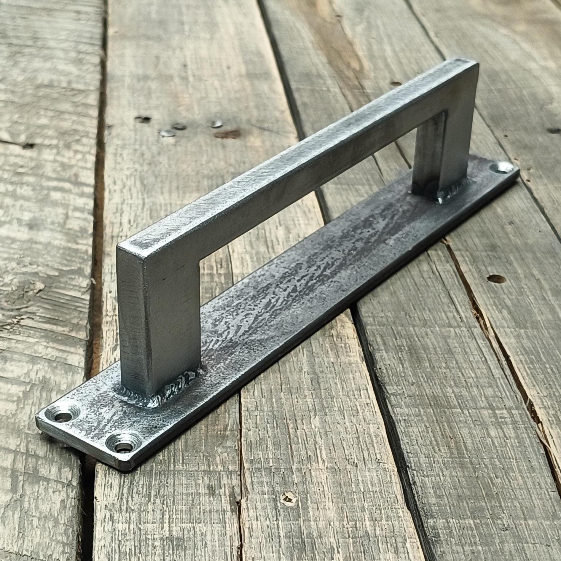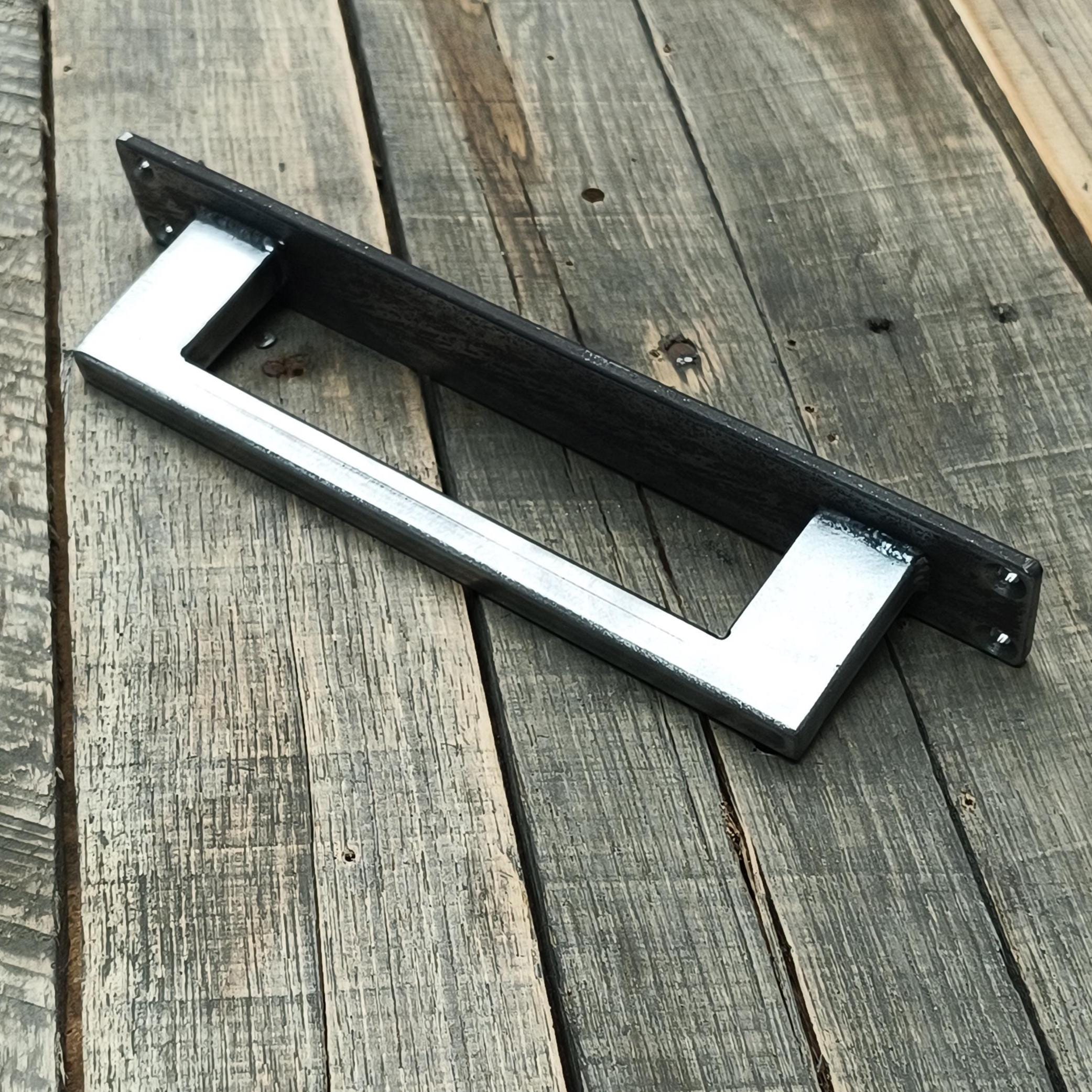 A tough, industrial style pull without the extra bulk of a traditional barn door handle.