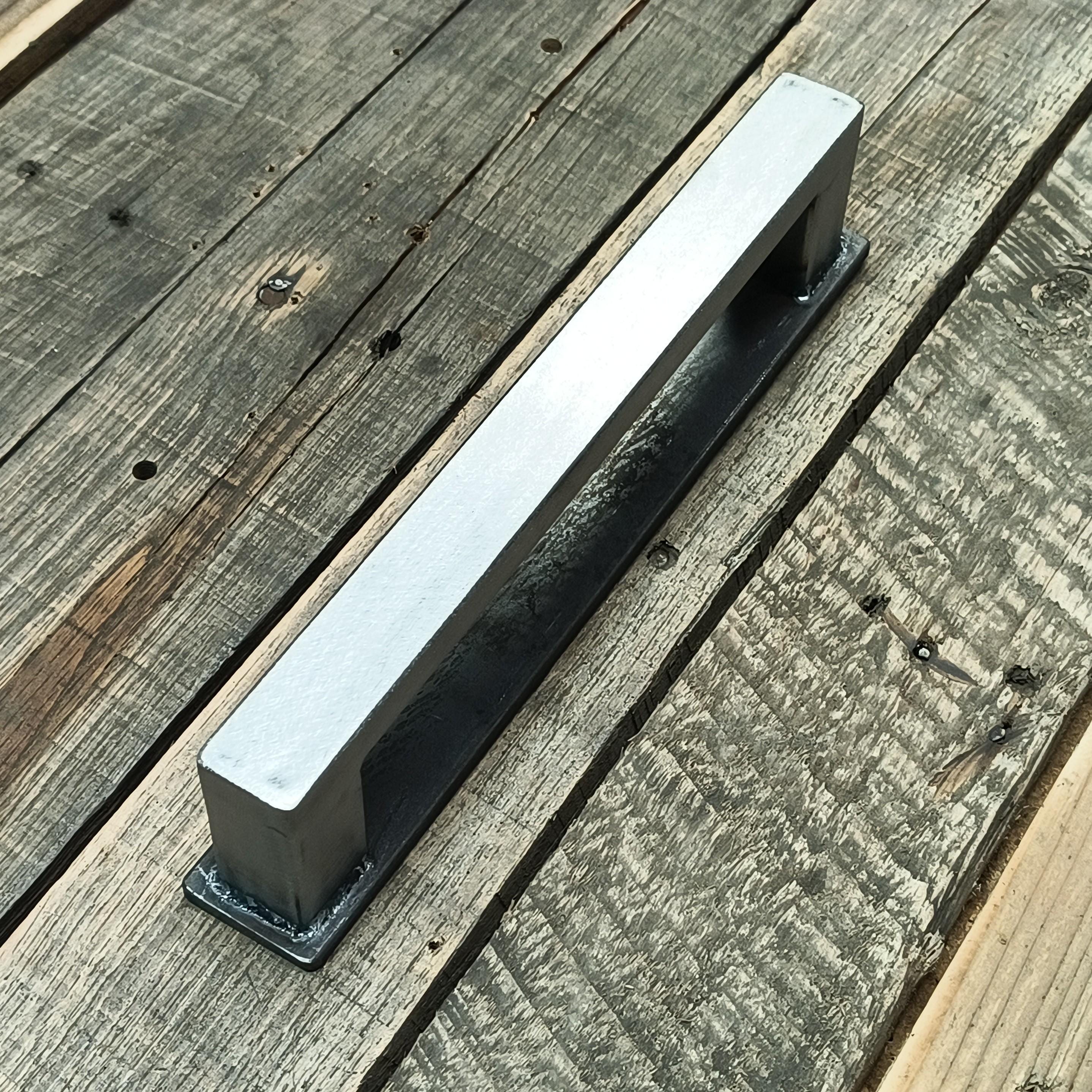 A tough, industrial style pull without the extra bulk of a traditional barn door handle.