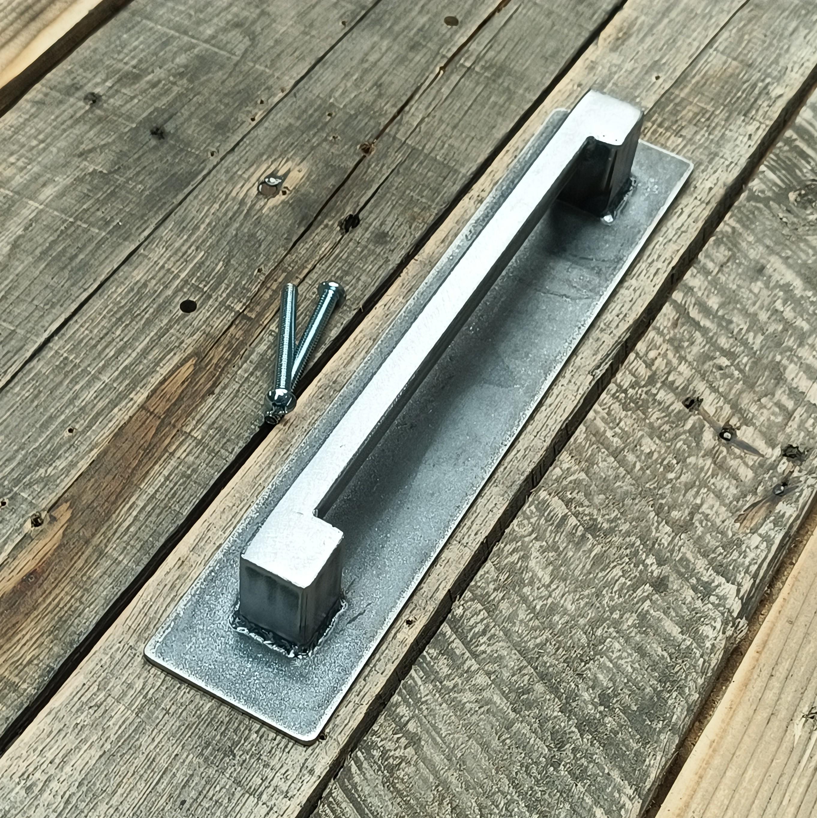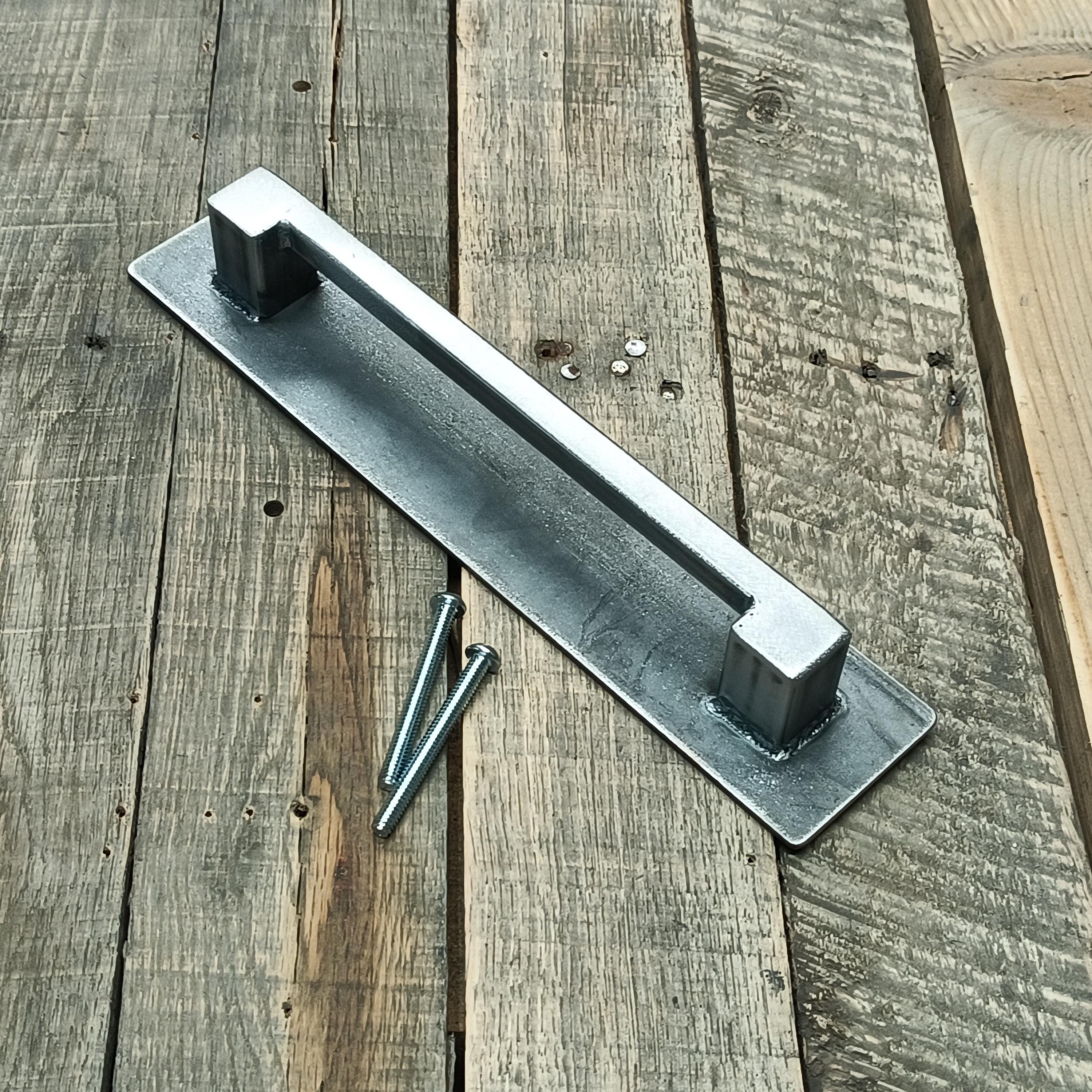 Upgrade your barn door with this rear mounting handmade steel handle, built for strength, style, and simplicity. This industrial door pull is crafted from raw steel rectangular tubing and features a 1-½″ wide backplate for a clean, rugged look.