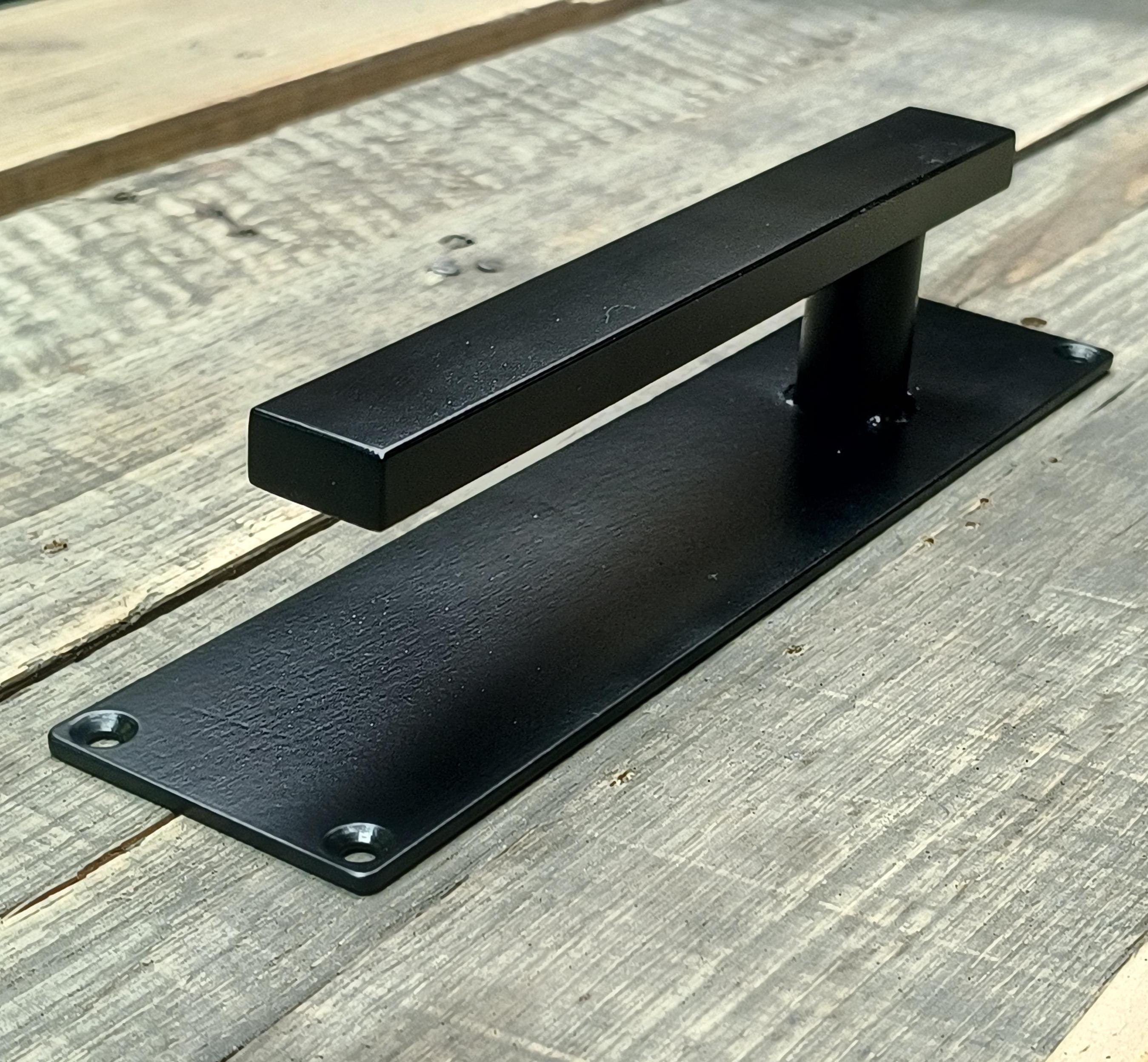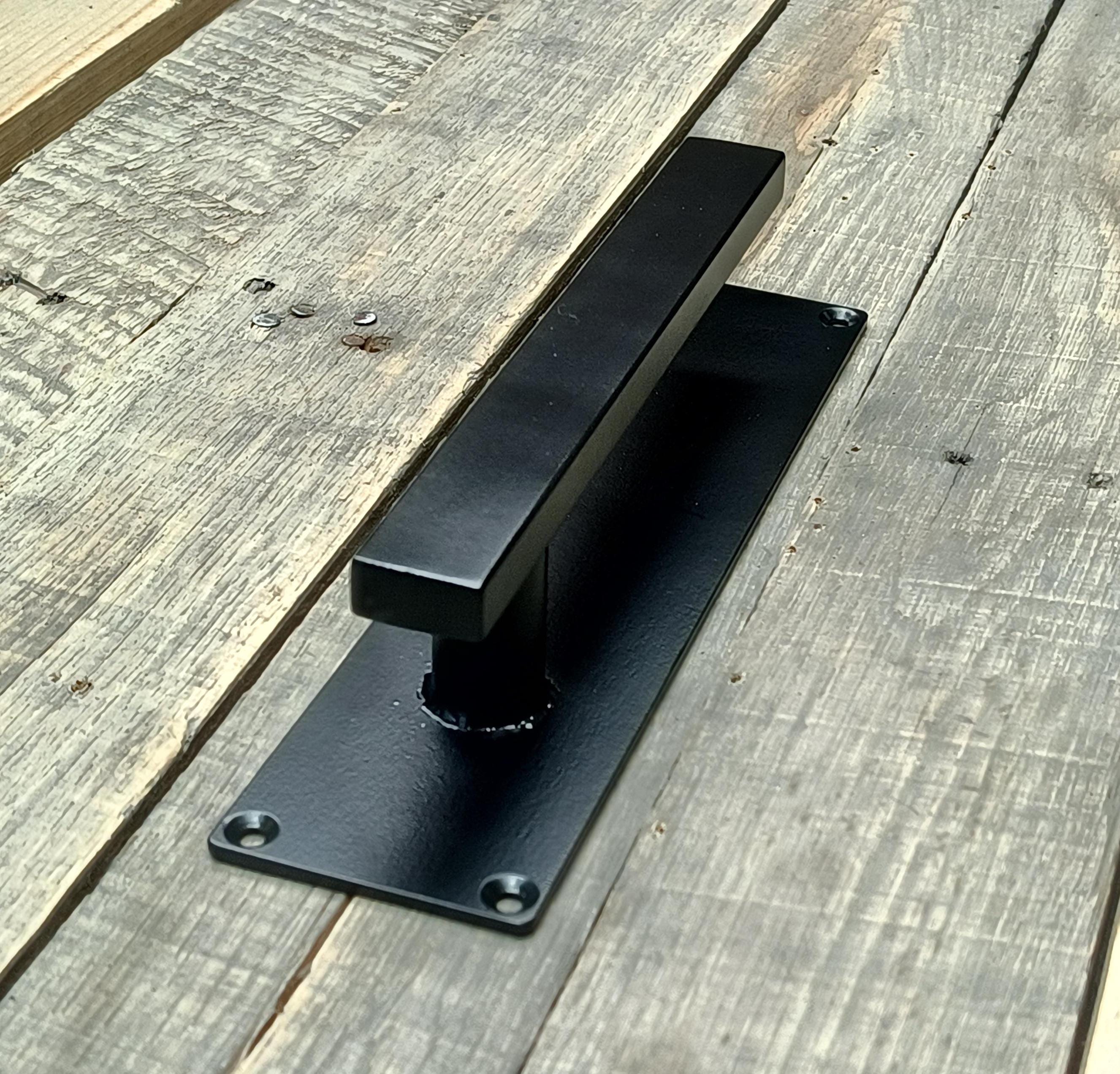 Barn Door Handle made with Square Steel Tube and Flat Steel Backing Plate