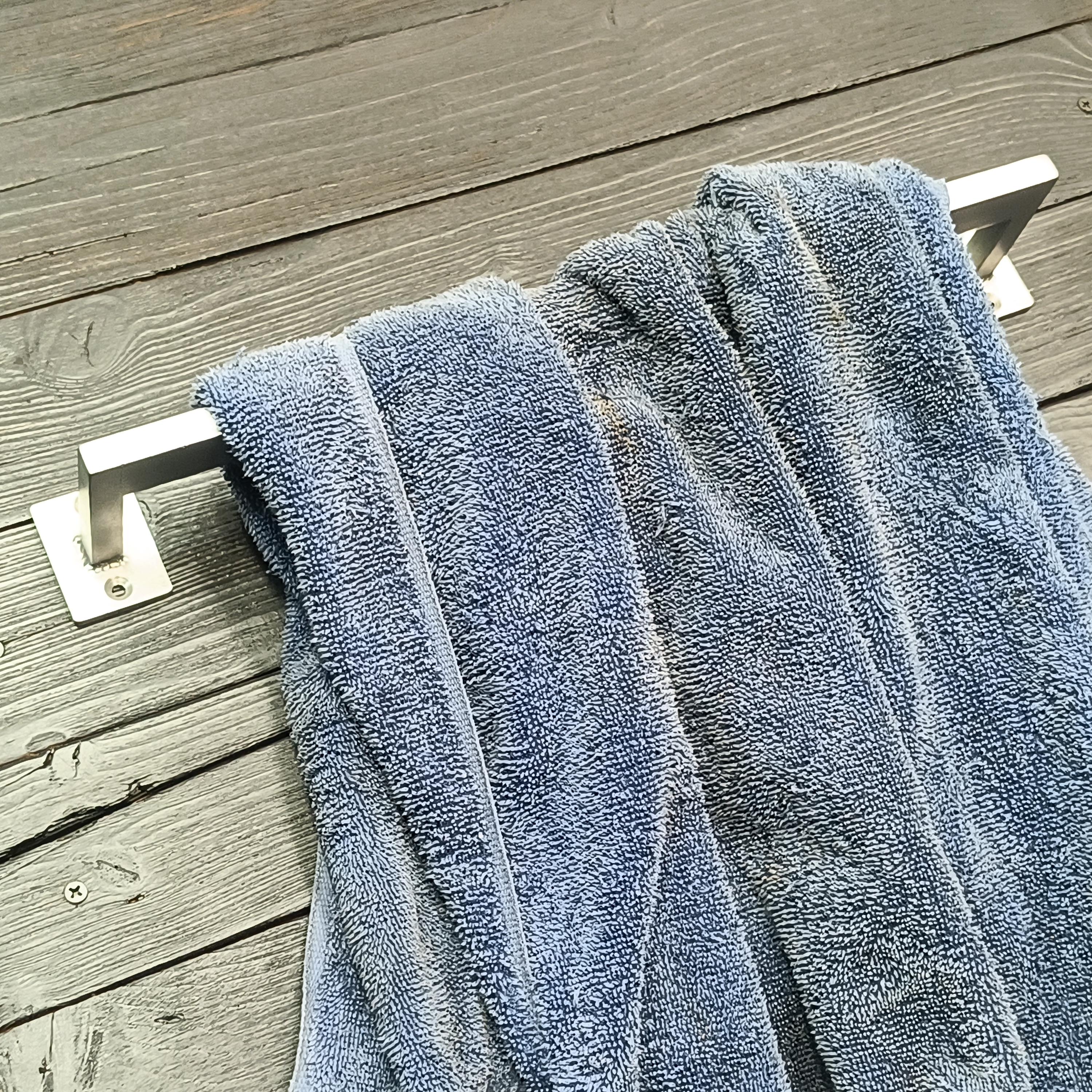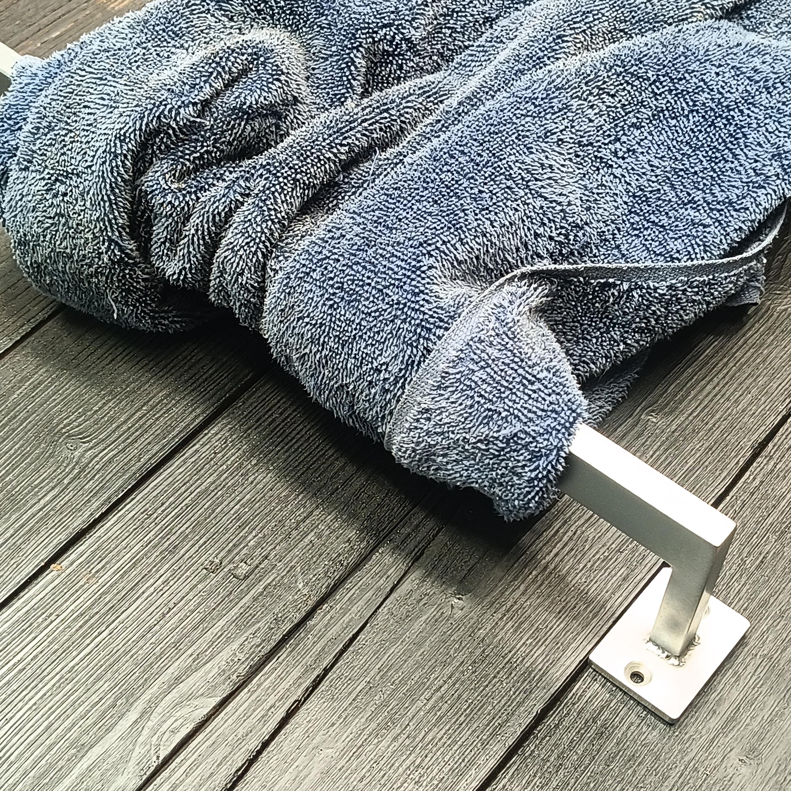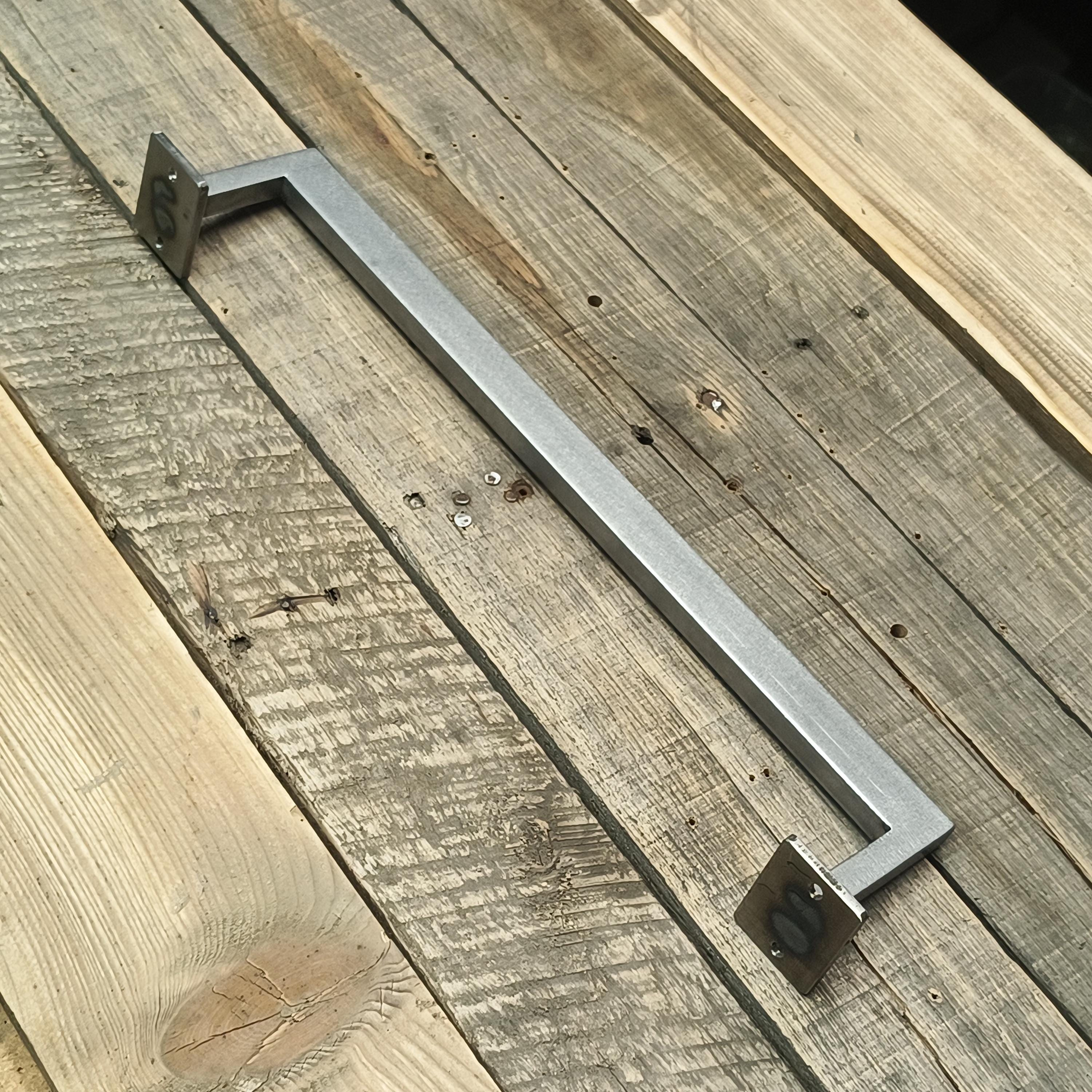 Handmade, fully TIG welded steel towel bar is constructed from 1" x 1/2" rectangular tubing and 1/2" solid stock - mounting holes pre-drilled.