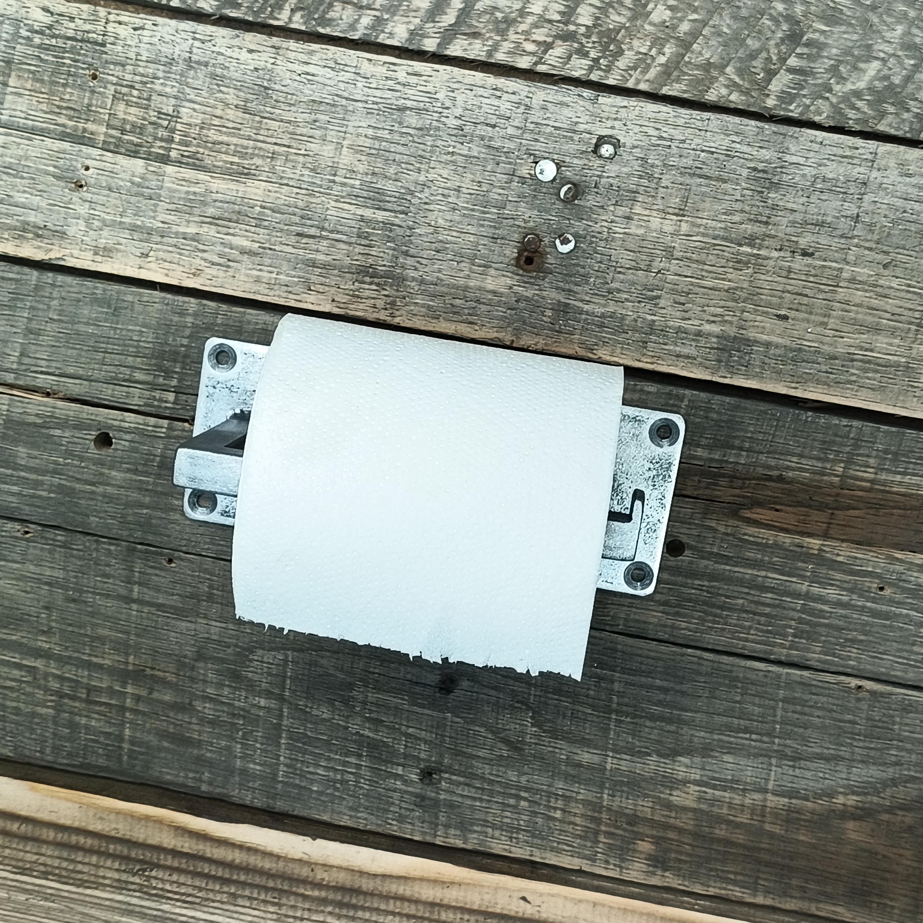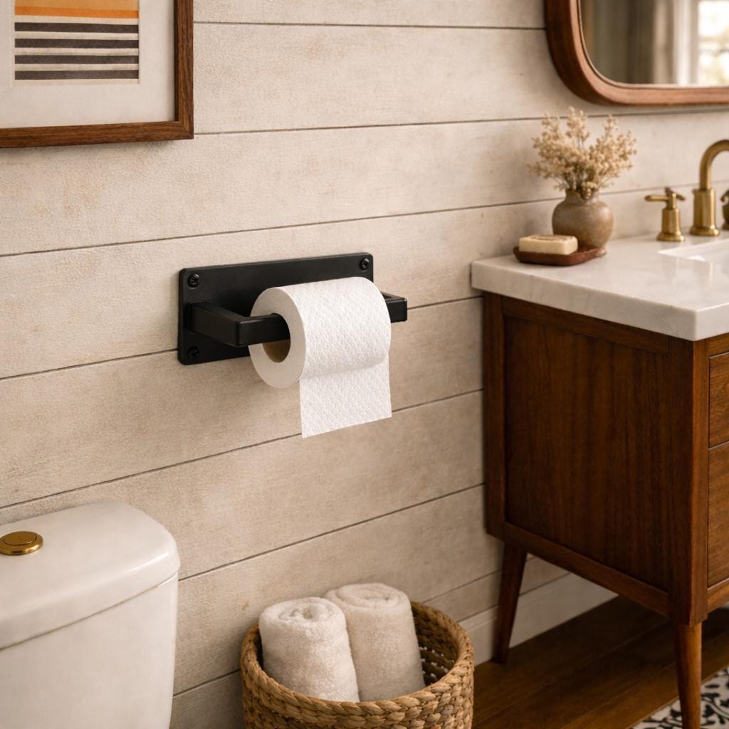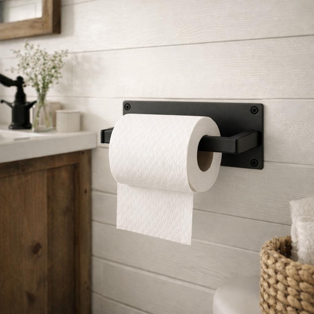 Half-inch single roll toilet paper holder for regular-sized paper rolls.