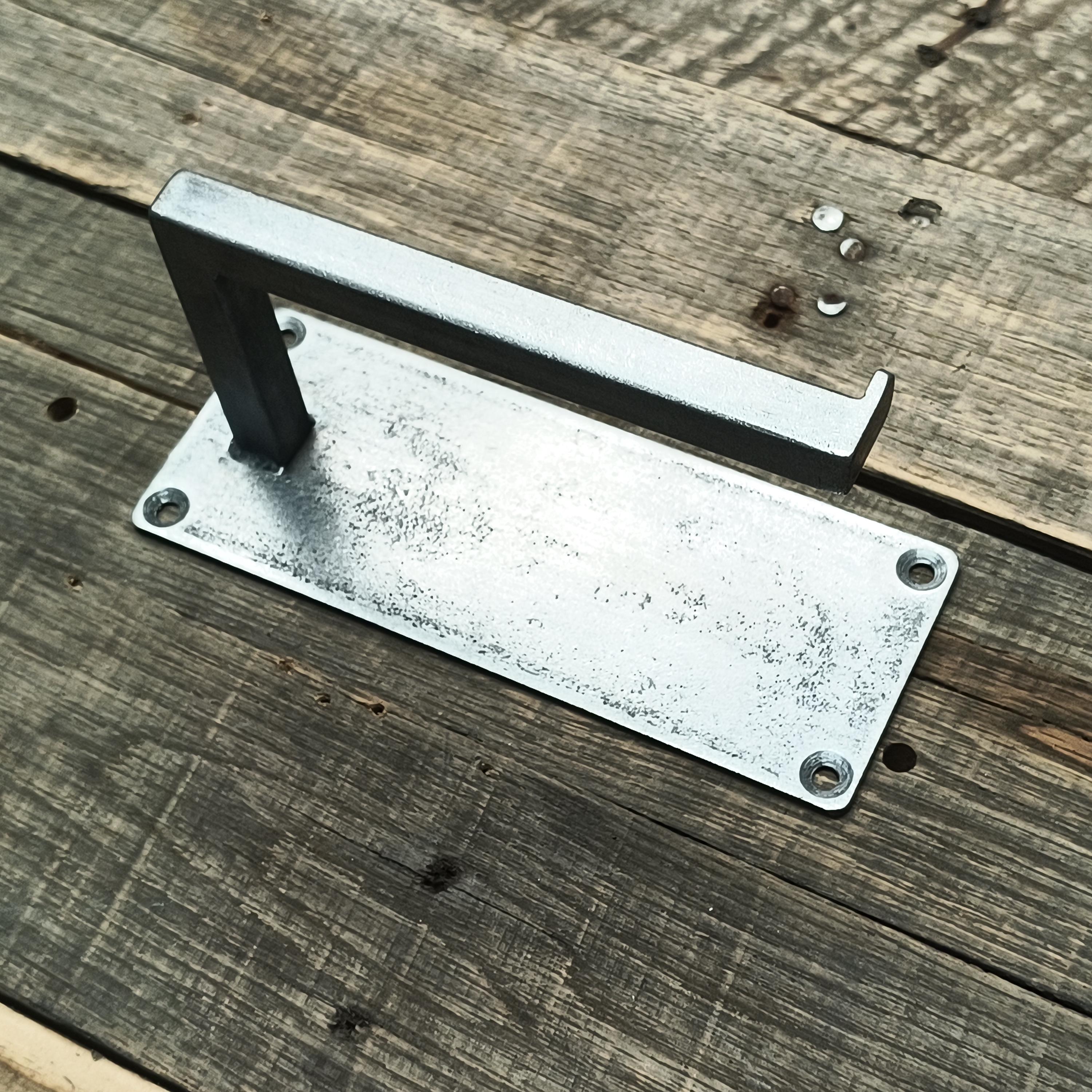 Available in raw steel, clear coated steel and flat black. Other colors may be possible, contact me and see what we can work out. As a note: raw steel *will* rust if not maintained and is typically offered for customers who have a product they'd like to use on the holder themselves - paint or sealer, perhaps to exactly match other finishes in their home. They can also be allowed to lightly rust and then clearcoated to halt the progression of the rust while maintaining the bad-ass look. If you have any questions, shoot me a line!