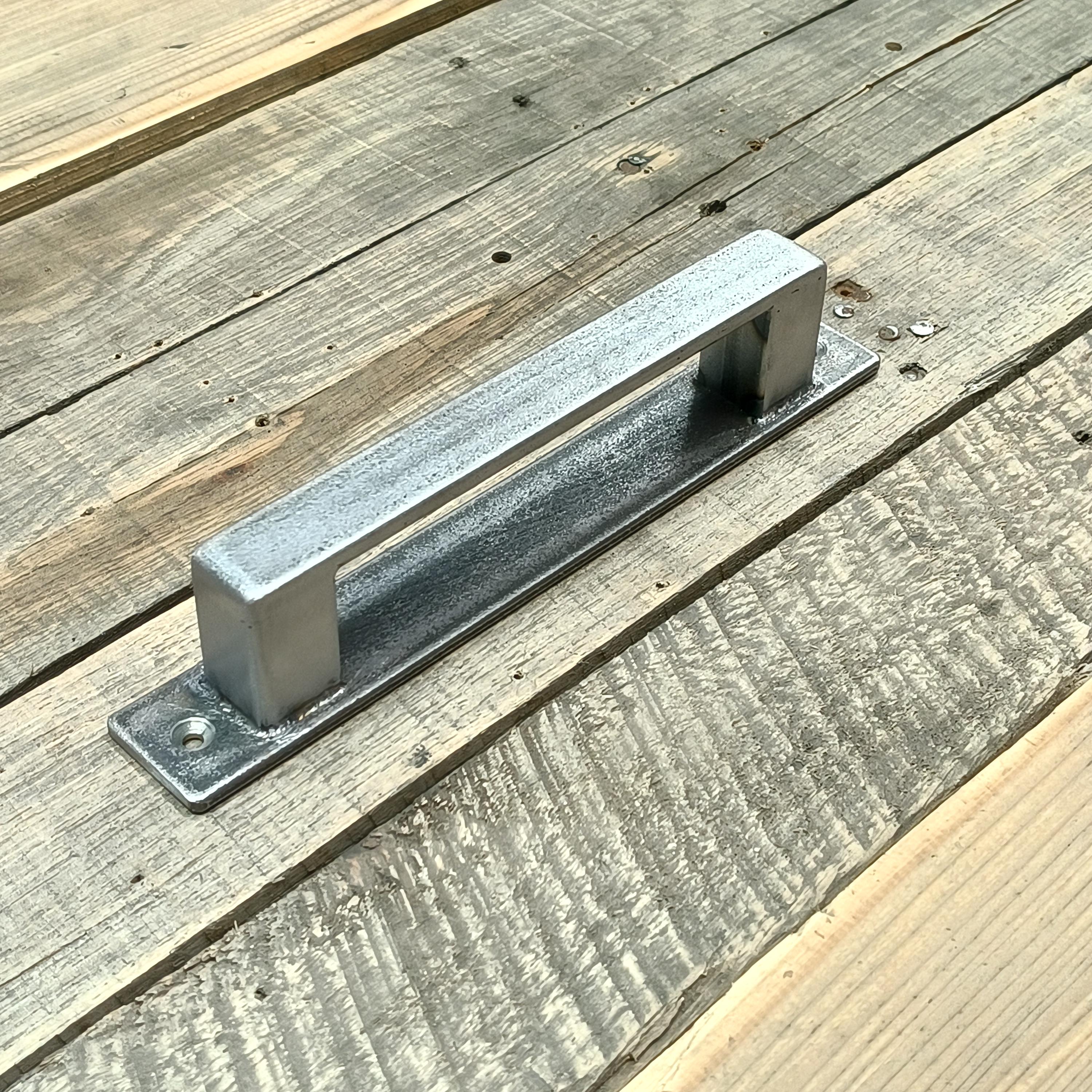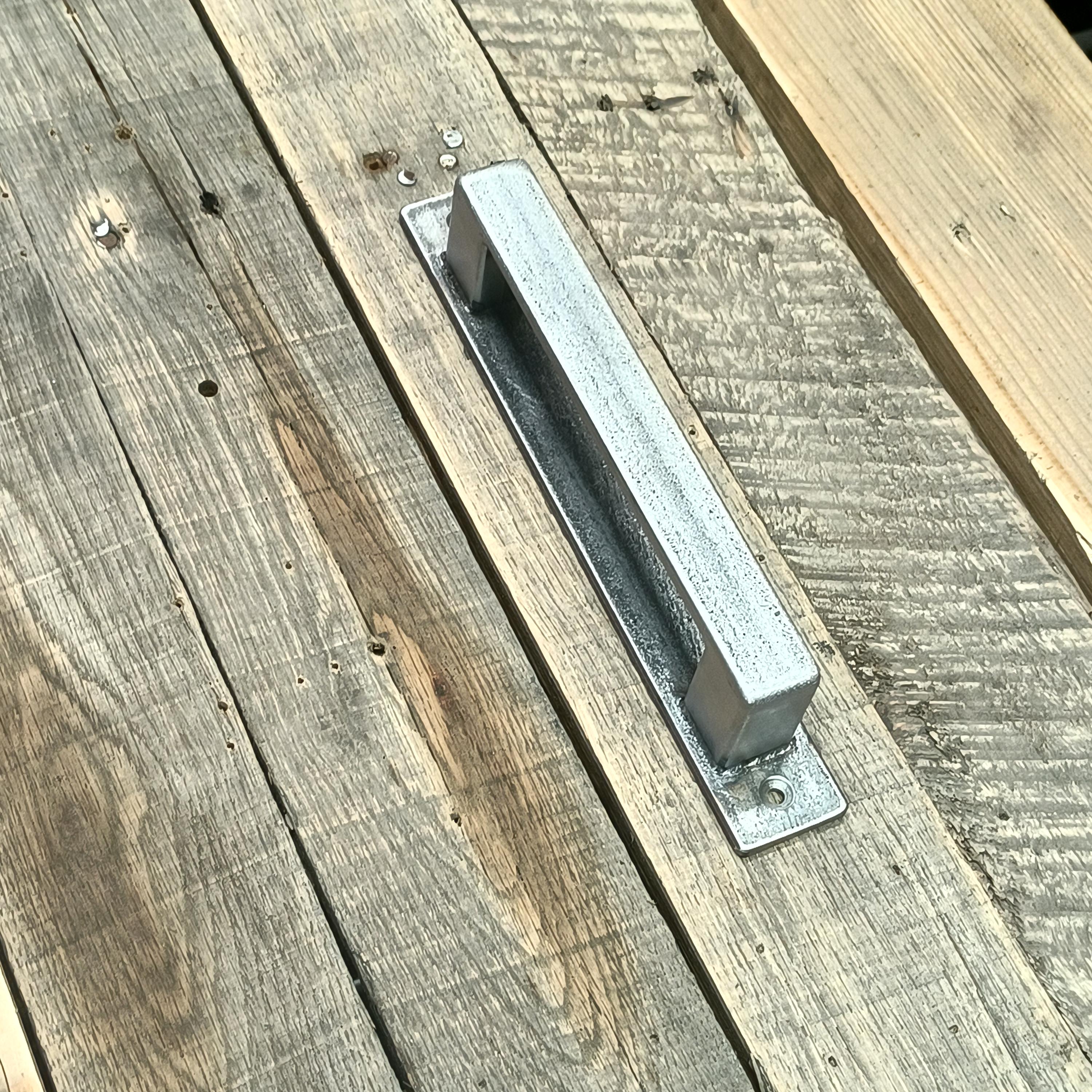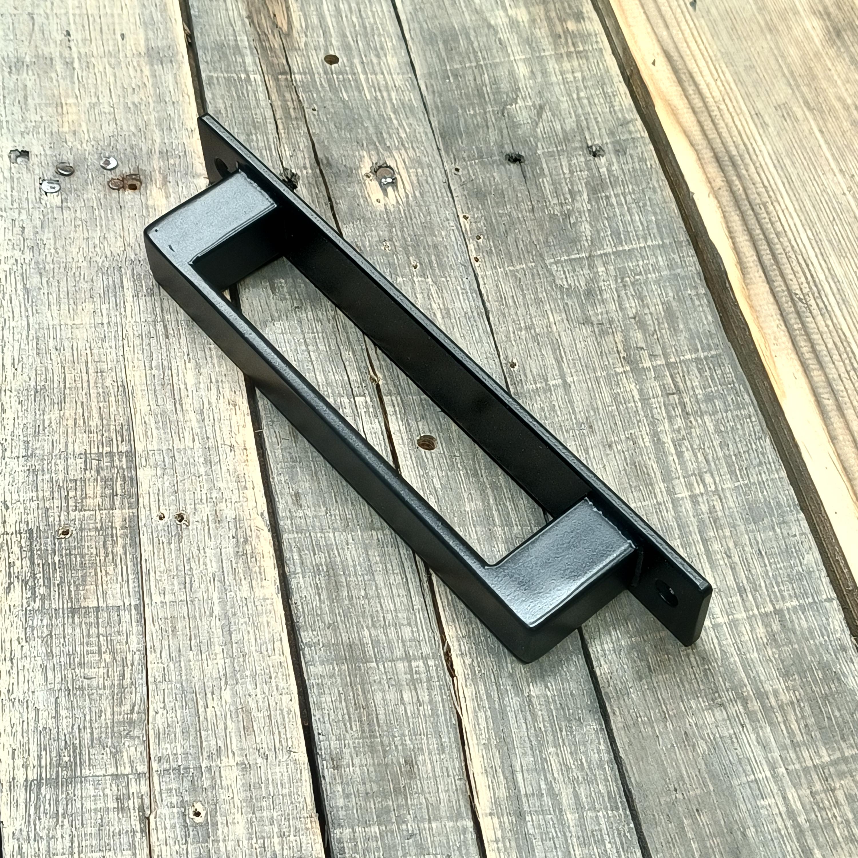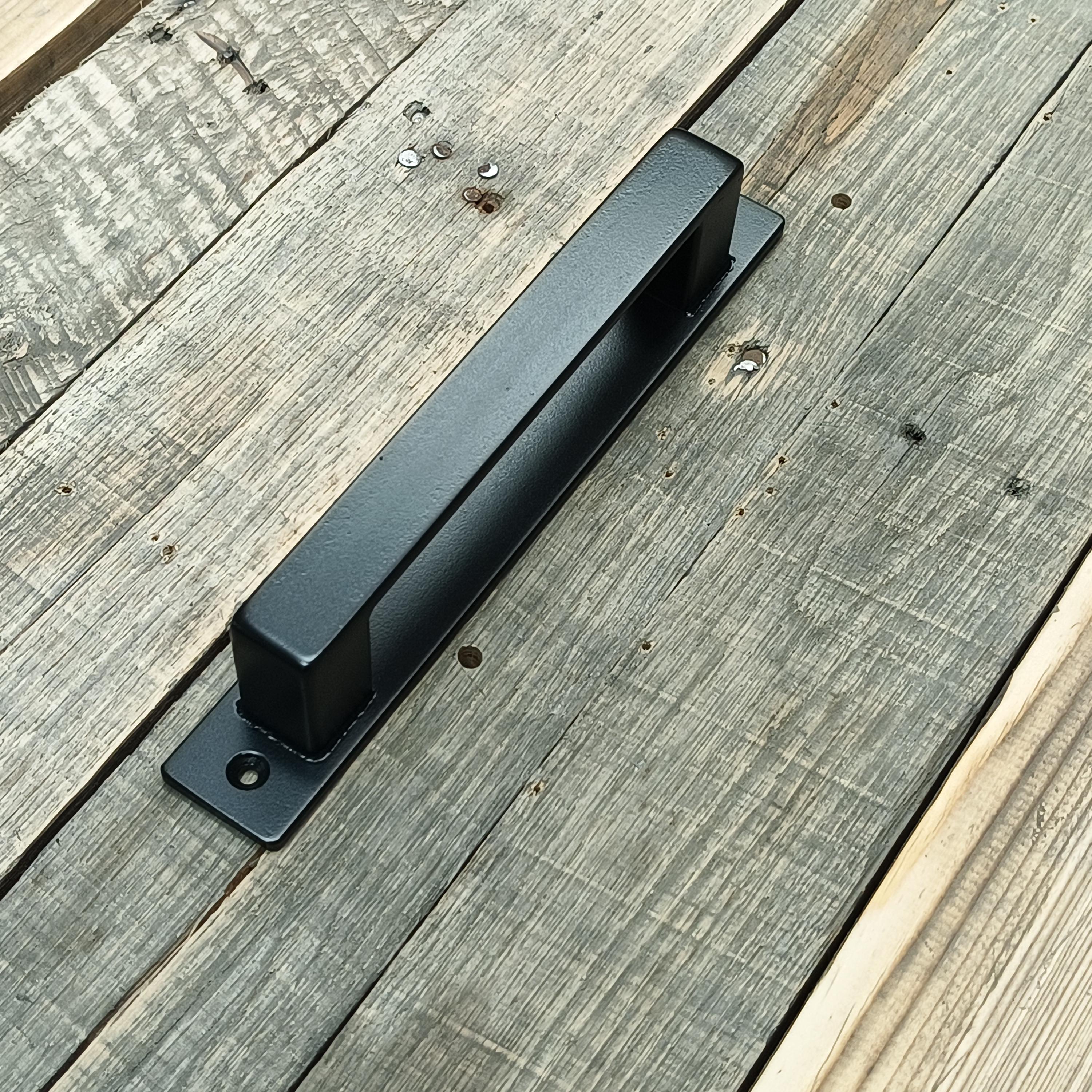 Upgrade your barn door with this handmade steel handle, built for strength, style, and simplicity. This industrial door pull is crafted from raw steel rectangular tubing and features a 1-½″ wide backplate for a clean, rugged look.
