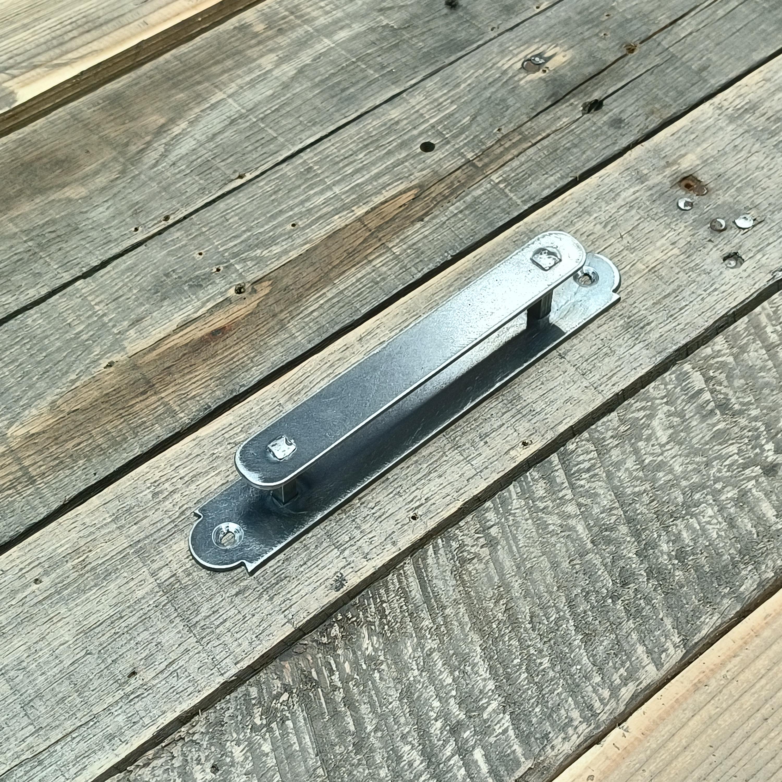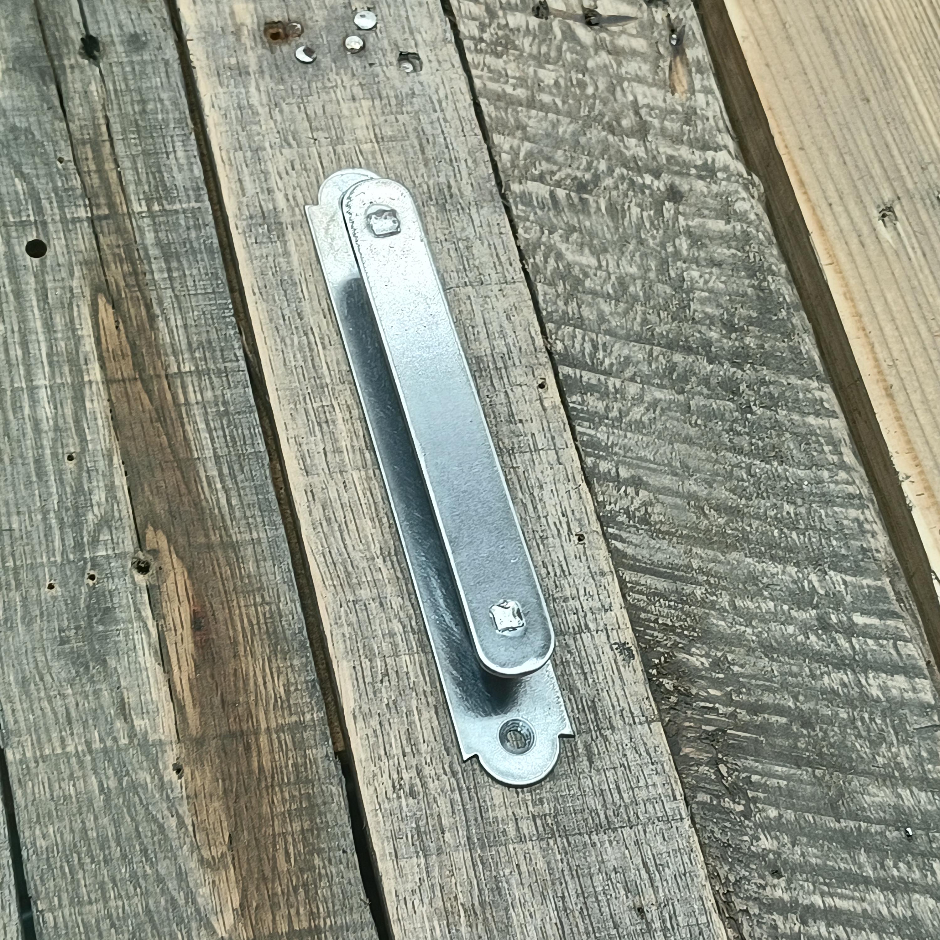 Flat Steel Cabinet Door handles, 8" tallThese are made of 1/8" thick steel plate drilled for #8 screws.Pictured in raw steel, no coatingThey are available painted or raw (clear coated) - contact for details!