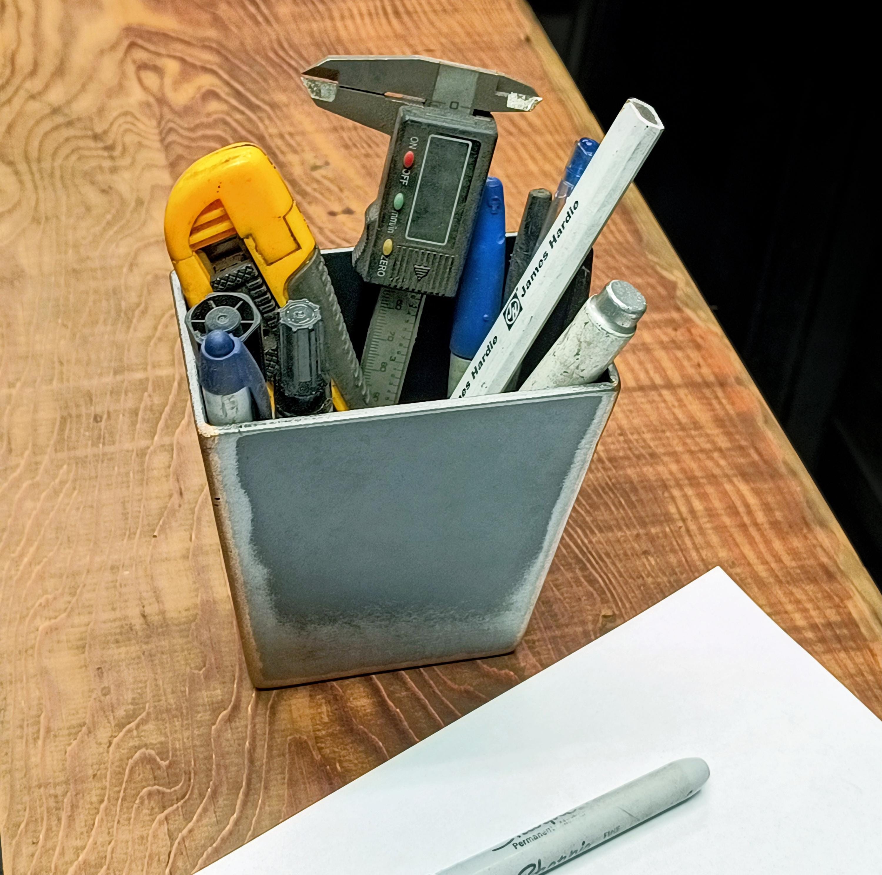 Care instructions: Wipe clean with a damp cloth to maintain its sleek appearance. This durable steel pencil holder is built to withstand daily use and elevate your organizational game with a minimalist, industrial aesthetic. Add this unique piece to your office or creative space today!