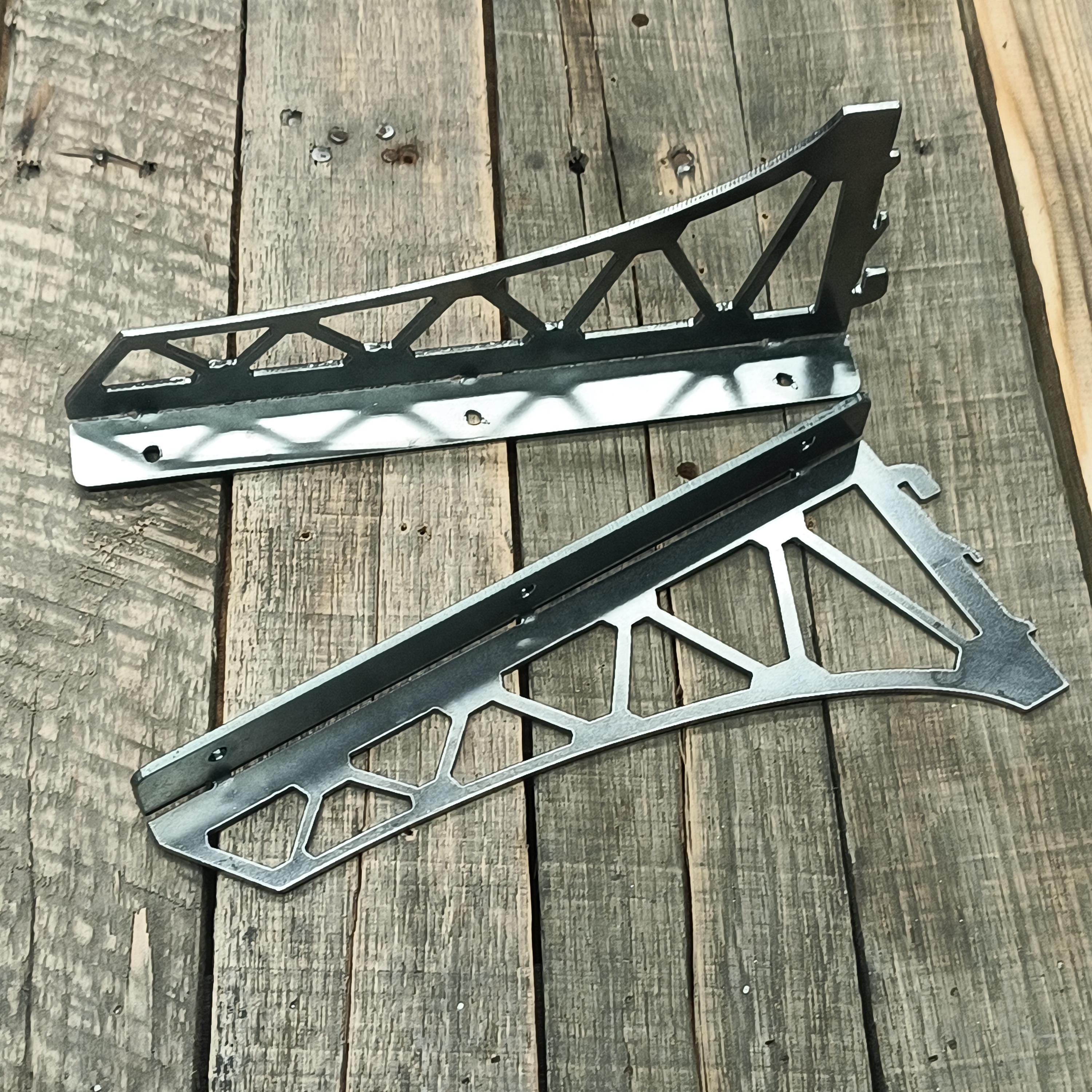 These truss shelf brackets have plasma cut pockets for strength and lightness. Perfect for industrial-style decor, add a hint of steampunk to your space!
