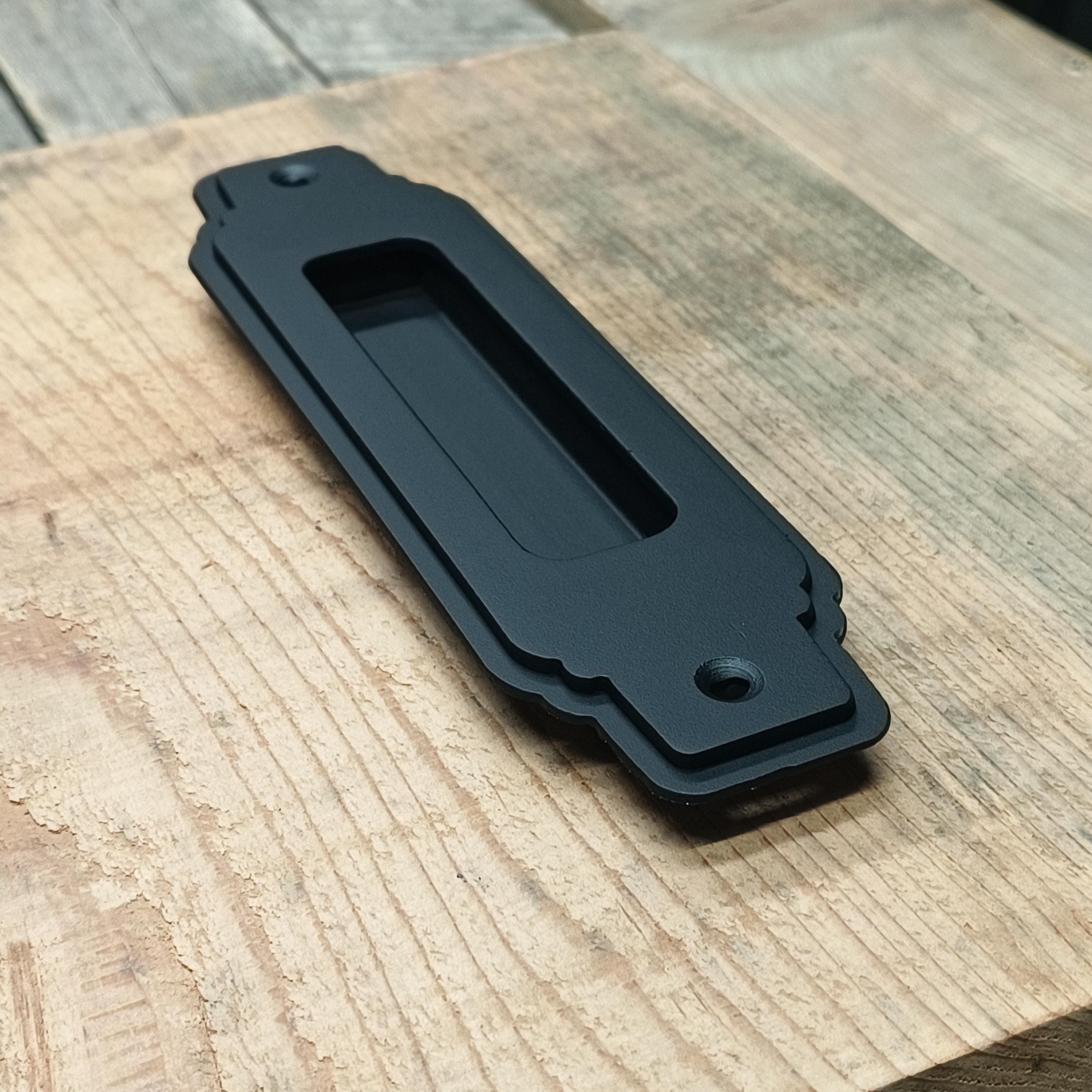 These closed-back, recessed steel handles are a perfect complement to our 1" and 1 1/4" Barn Door Handles. Just mount them onto the other side of a rolling loft door for a complete, industrial look!
