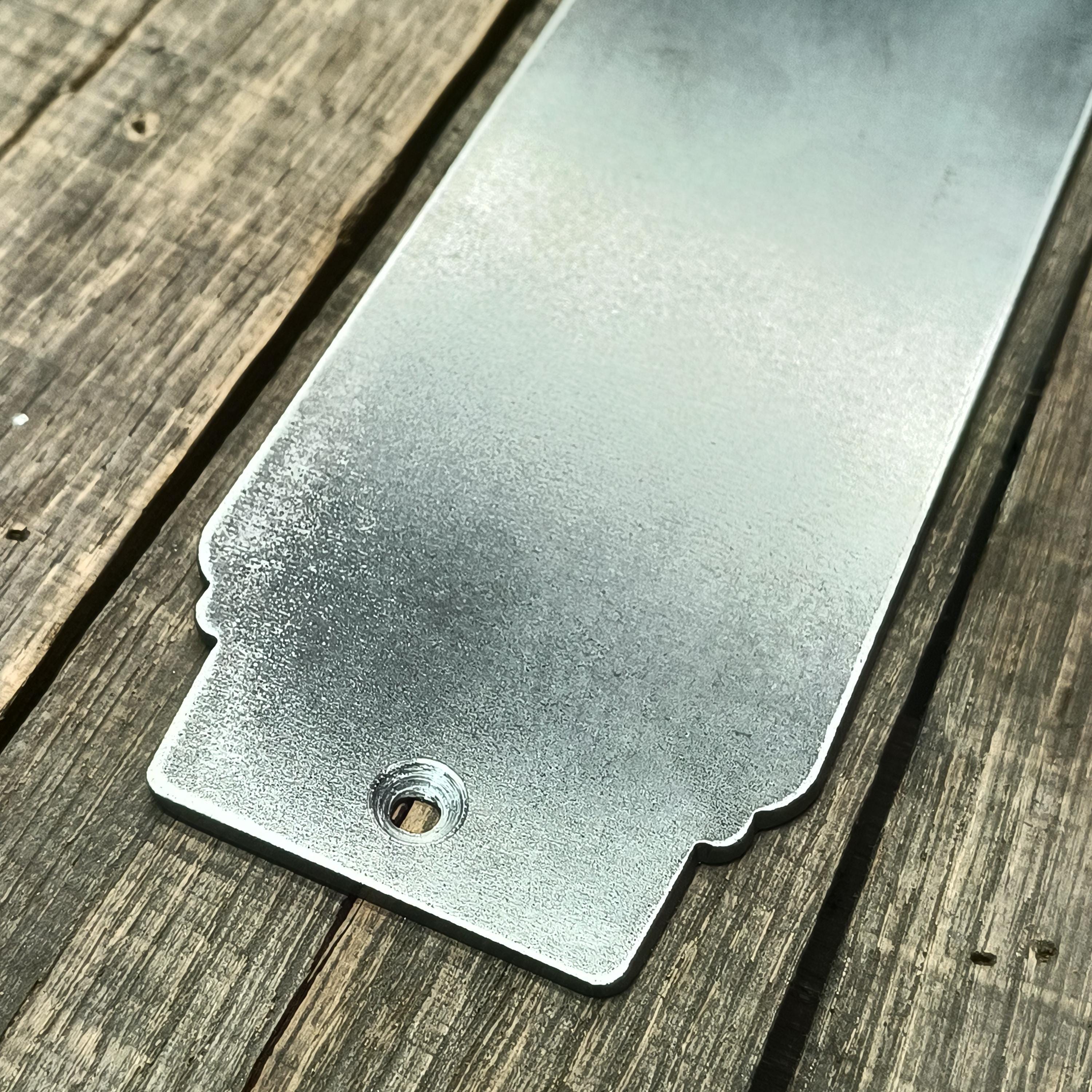 This push plate is made of 3" wide 1/8" thick hot-rolled flat stock. Available raw or with coat of clear to bring out the natural beauty of the mill-scale steel. Also available in solid color Excellent for commercial/exterior use. (When clear coated or painted)