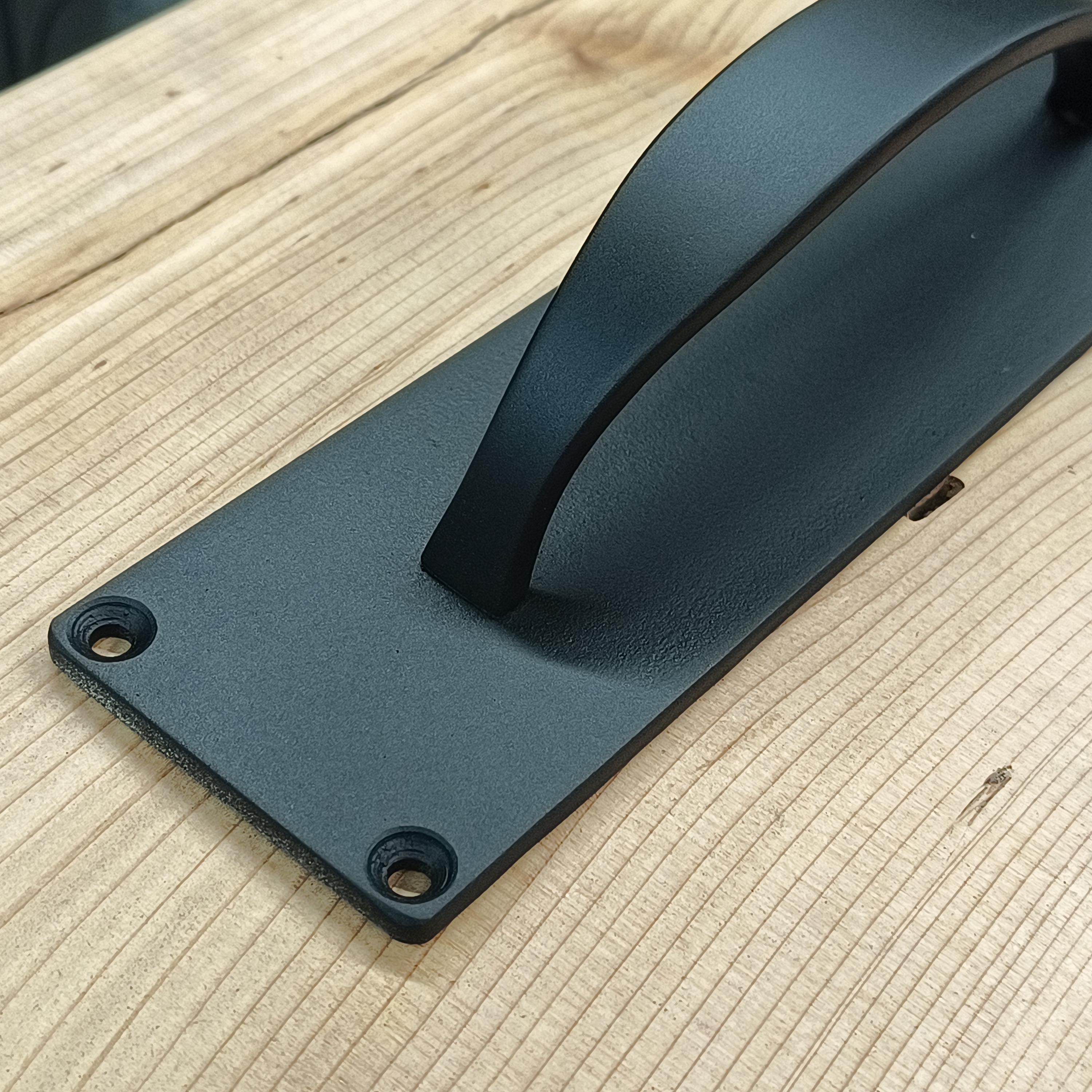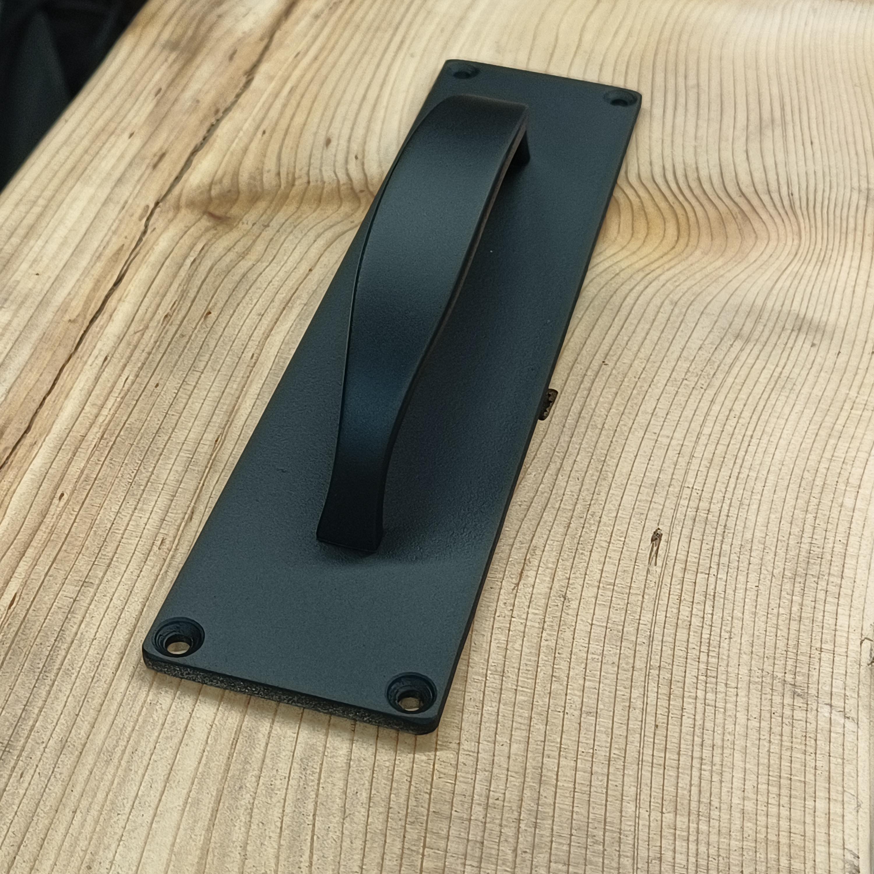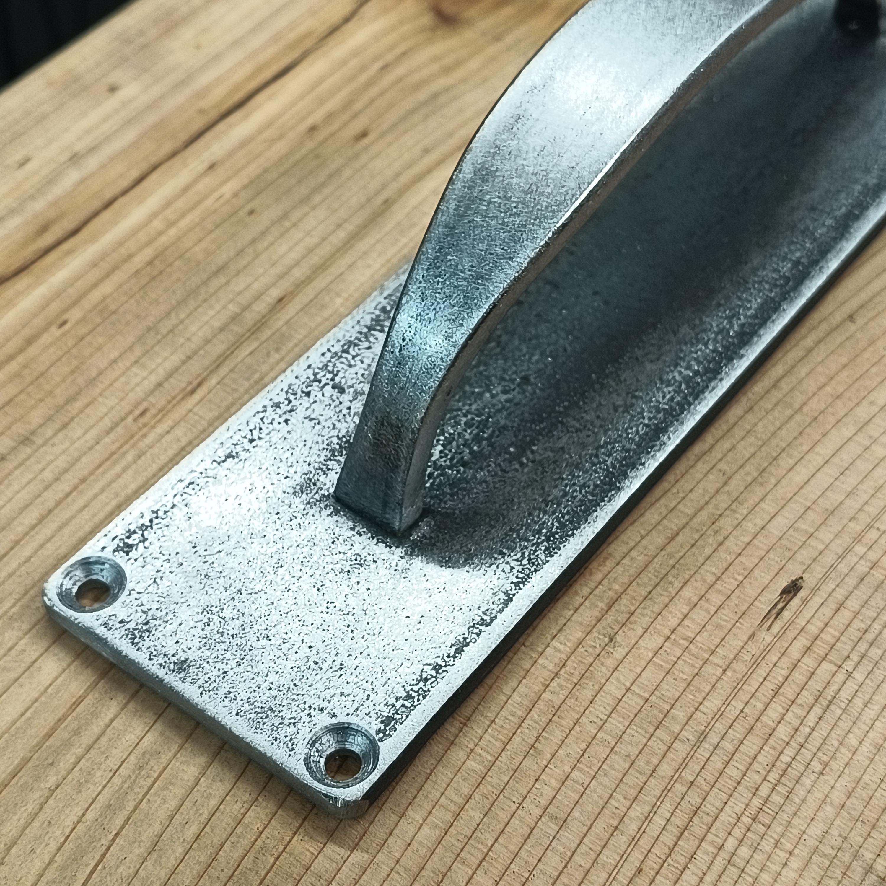 Pictured 10" handle finished in Black and Raw steel, no coating