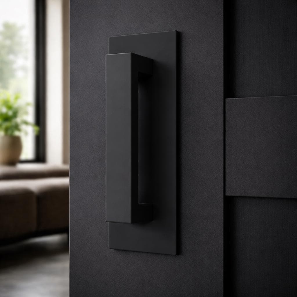 This handle is built from solid steel with a crisp rectangular profile and a subtle return at each end - a detail that gives it presence without unnecessary complexity. The result is something that feels deliberate in the hand and visually grounded on the door.