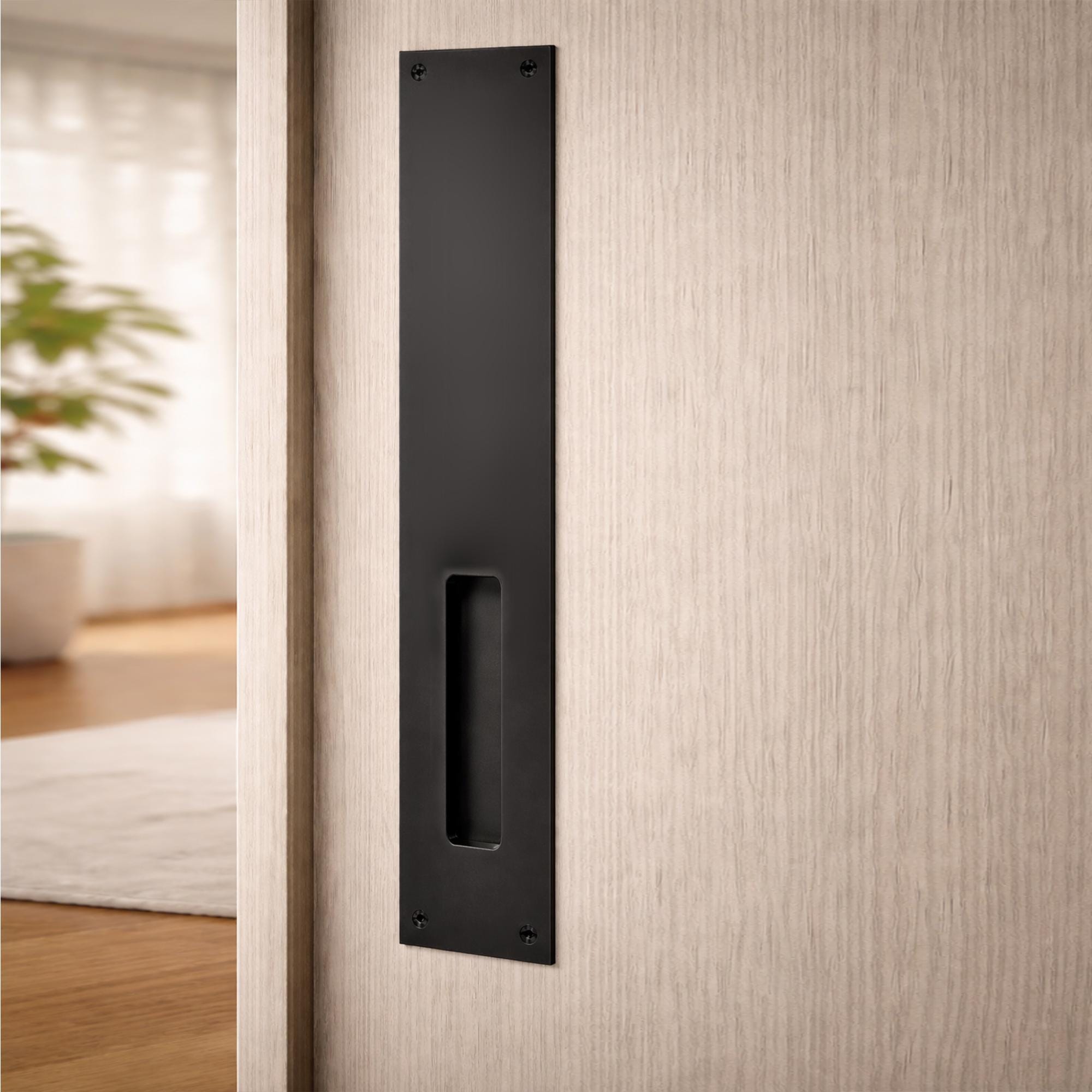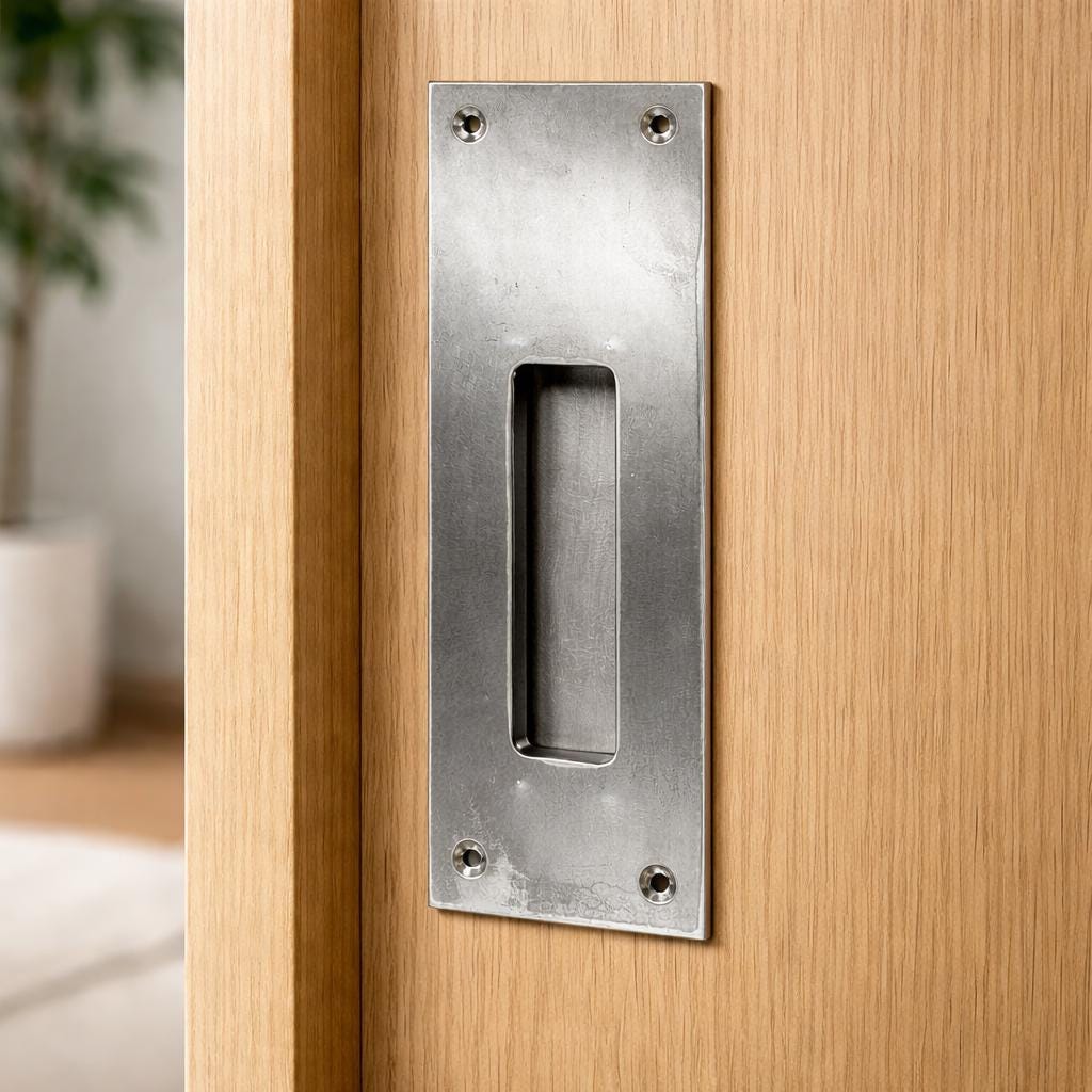 A clean, architectural recessed pull designed for modern pocket doors, sliders, and concealed openings. The extended plate height gives strong visual presence while keeping the function minimal and intuitive.