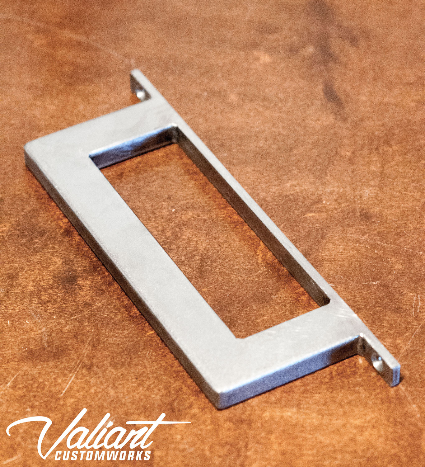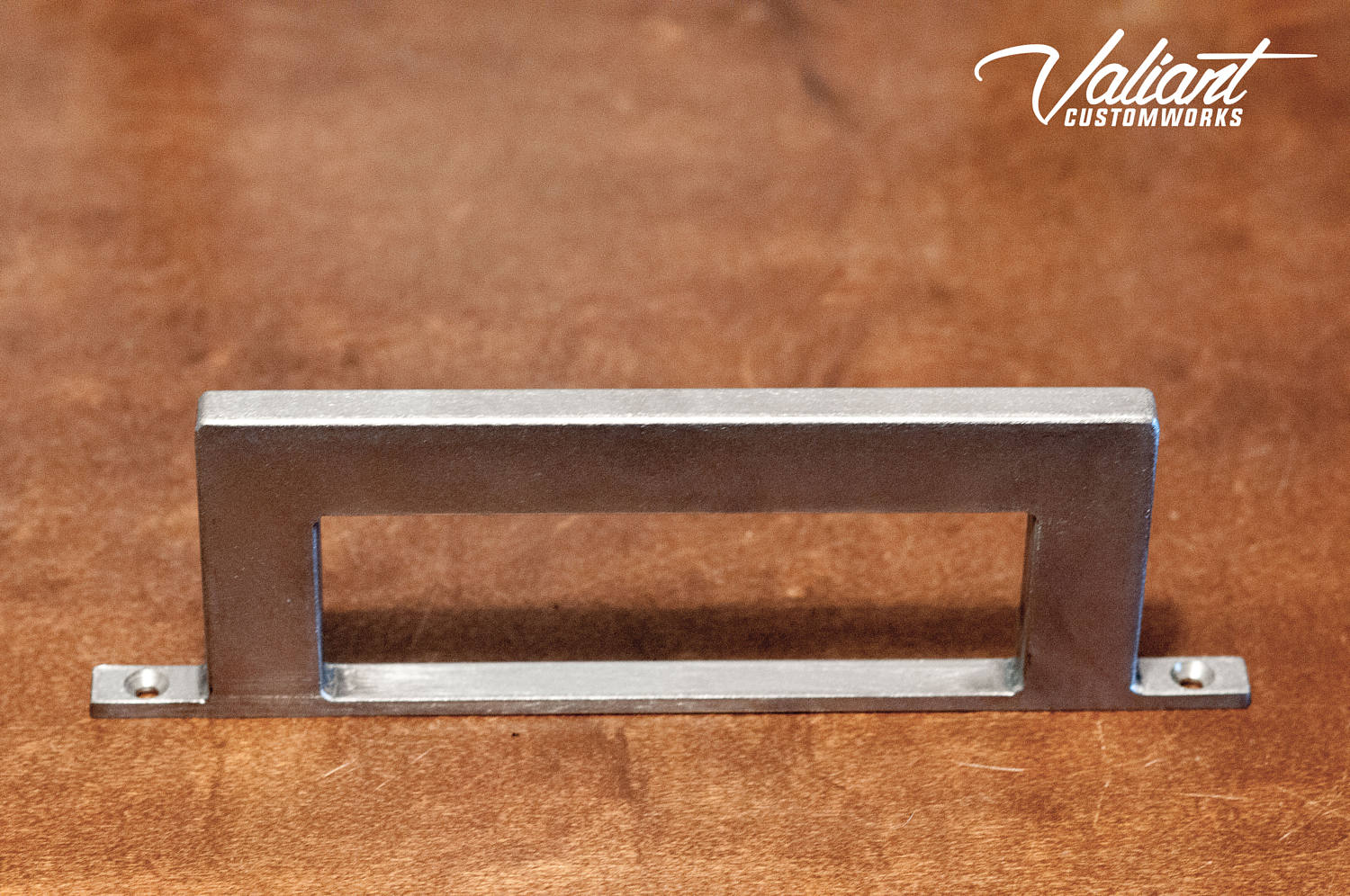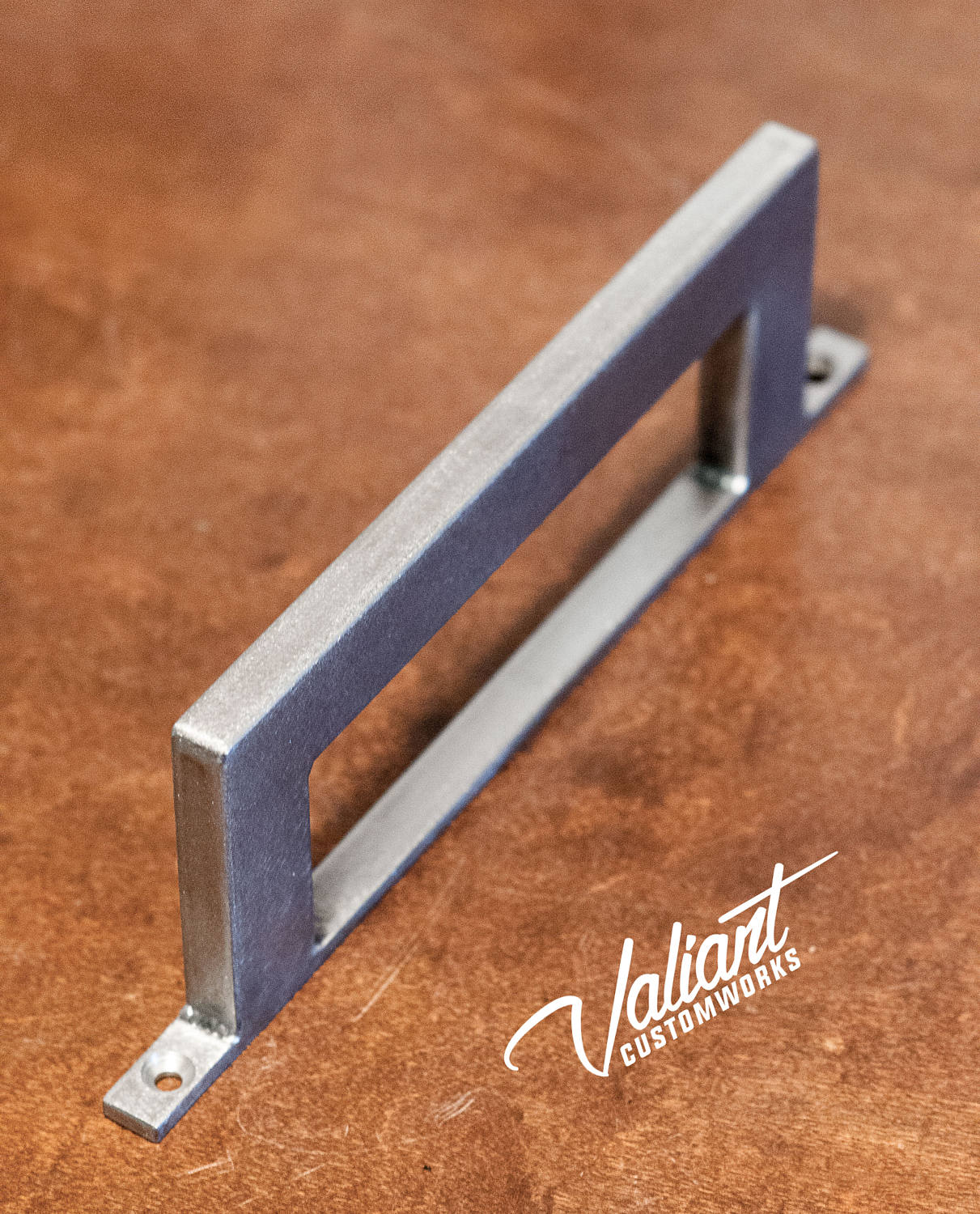 This barn door handle is made of 1" x 1/2" rectangle tube and will stand up to any punishment you could throw at it. Welds are ground clean and smoothed. Once its finished, the whole piece gets a coat of clear to bring out the natural beauty of the steel. Excellent for commercial/exterior use.