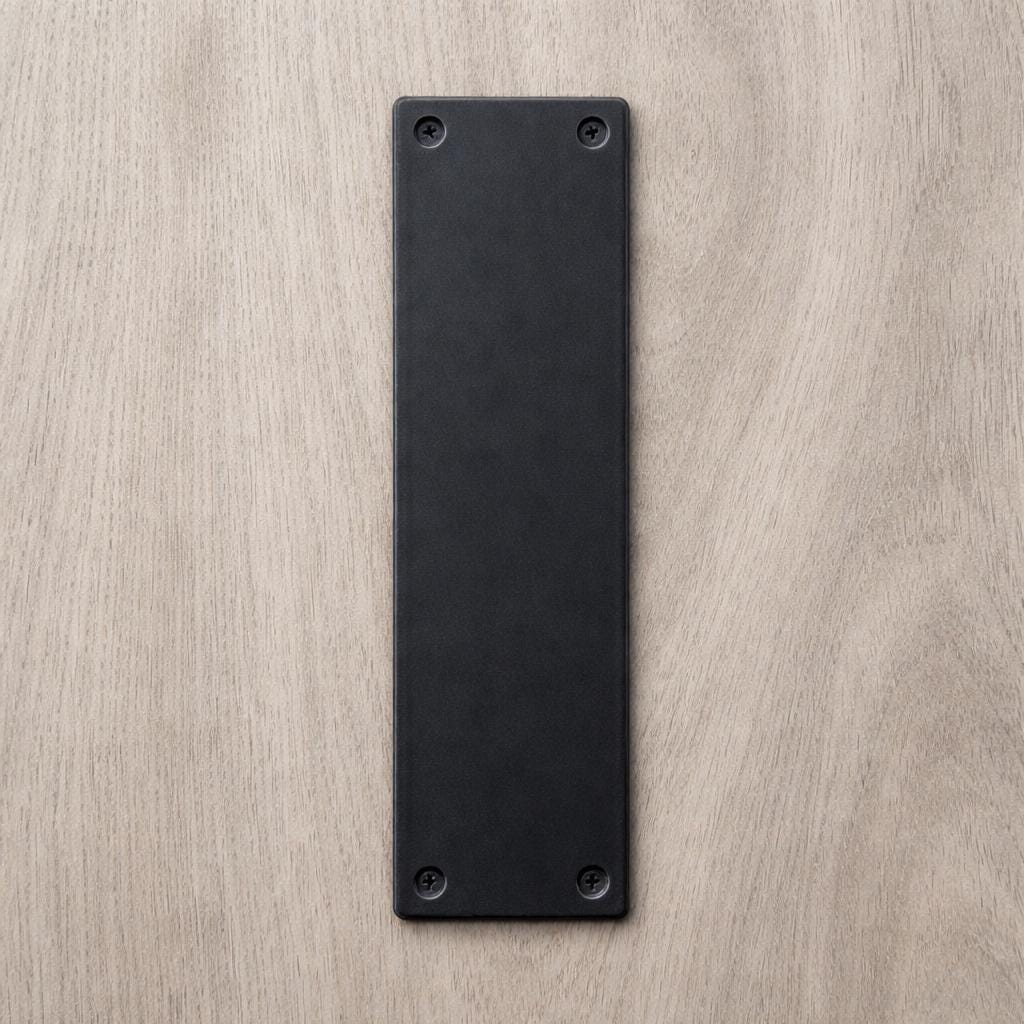 A clean, architectural plate designed for high-use doors without the stamped or decorative look. Built from solid steel flat bar, this is meant to read as permanent hardware — not an afterthought.