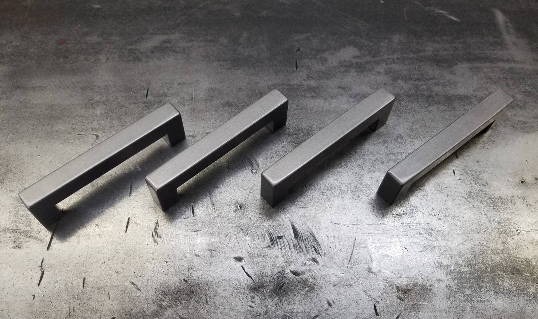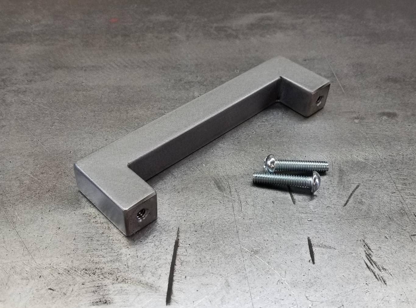 These industrial drawer pulls are made of 3/4" solid square bar. They are threaded for 1/4"-20 UNC bolts, of which 2 are included - typically 1-1/4" length.