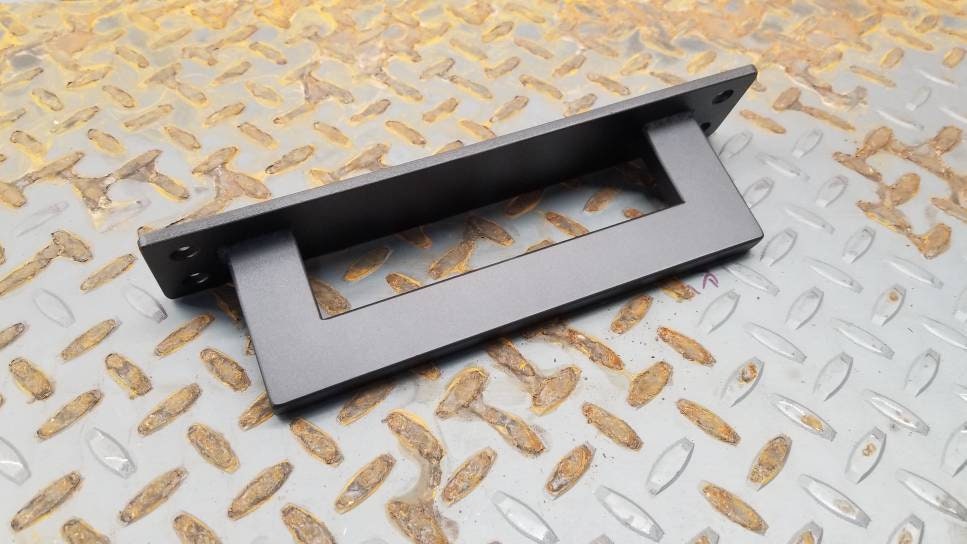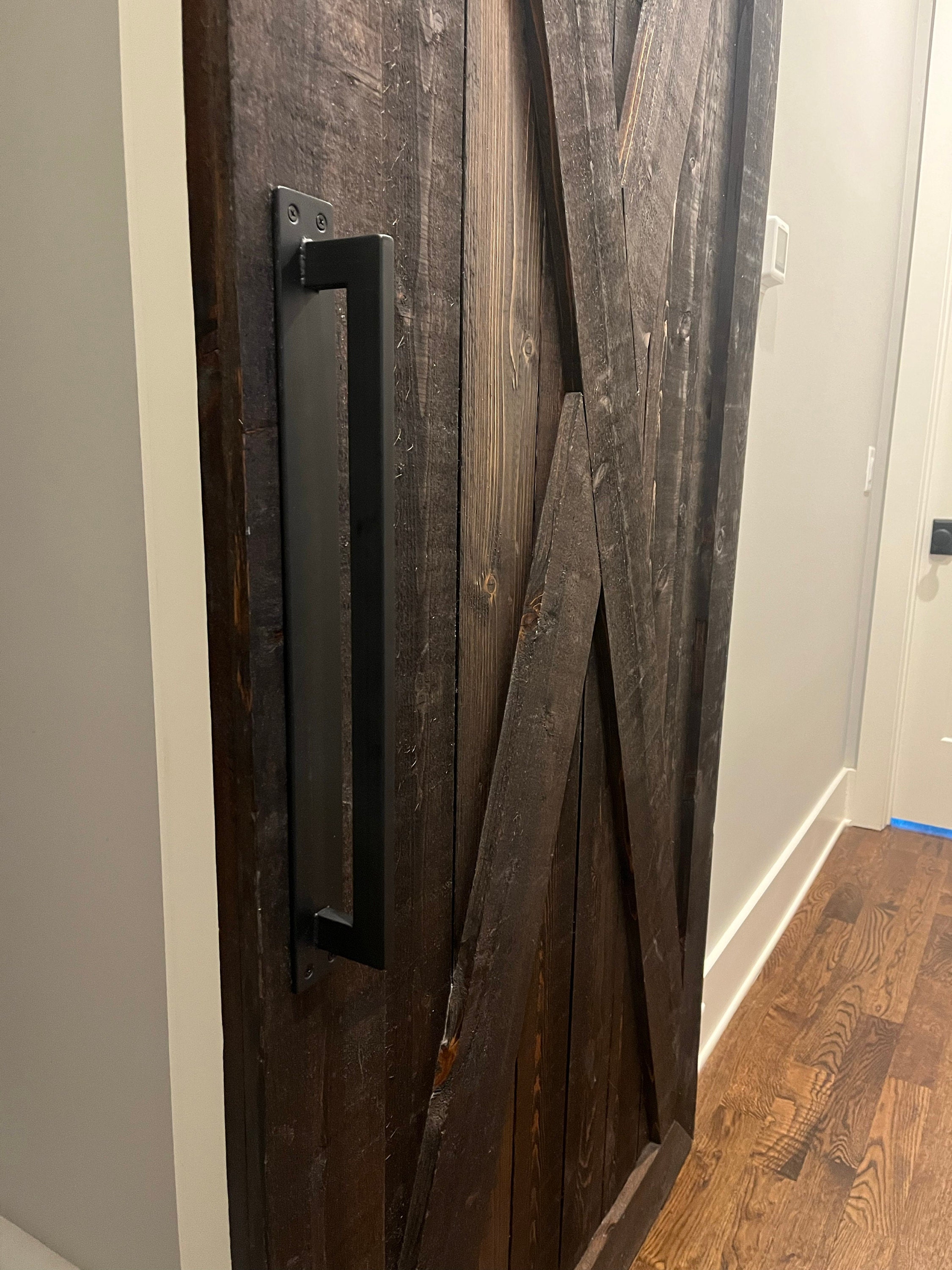 A tough, industrial style pull without the extra bulk of a traditional barn door handle.