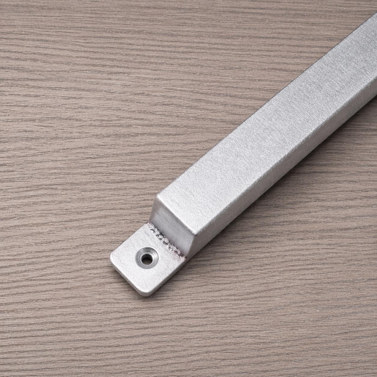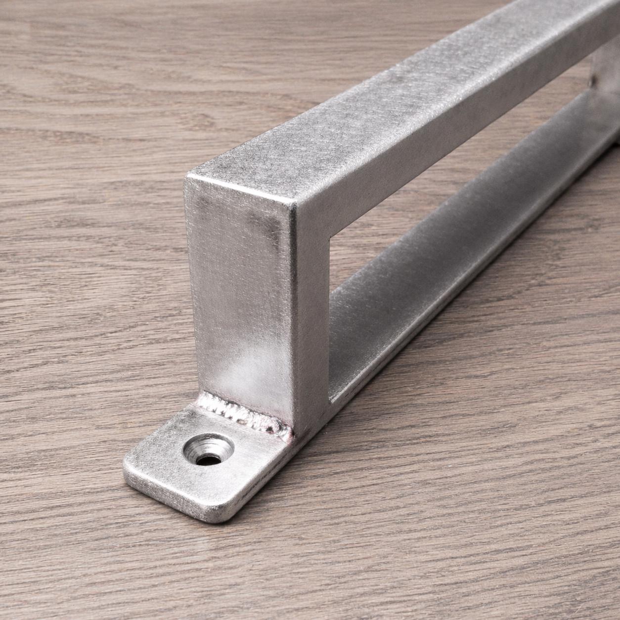 This door handle is made of 1/2" x 1" rectangle steel tube and will stand up to any punishment you could throw at it. The welds are ground clean and smoothed. Once it's finished, the whole piece gets a coat of clear to bring out the natural beauty of the steel. Another option is to paint the handle flat black for a refined, matte finish.