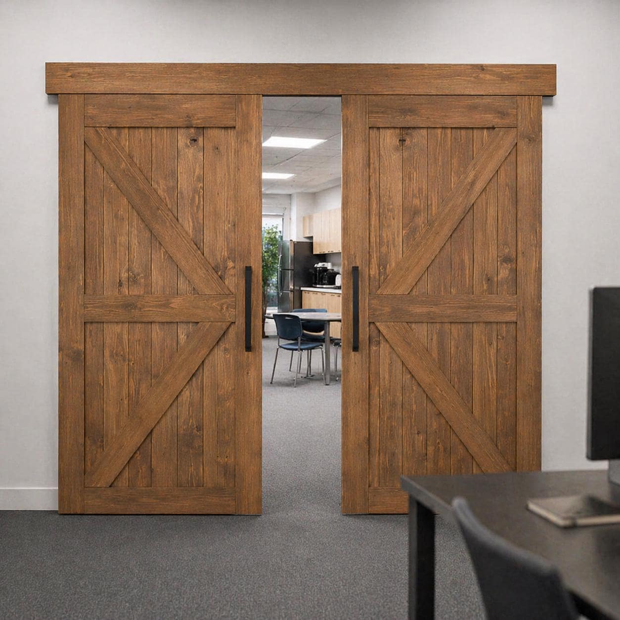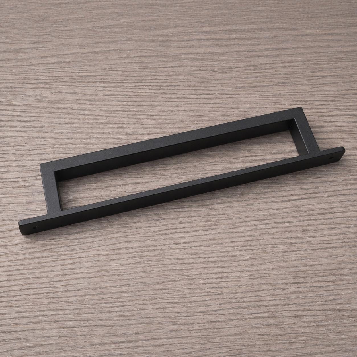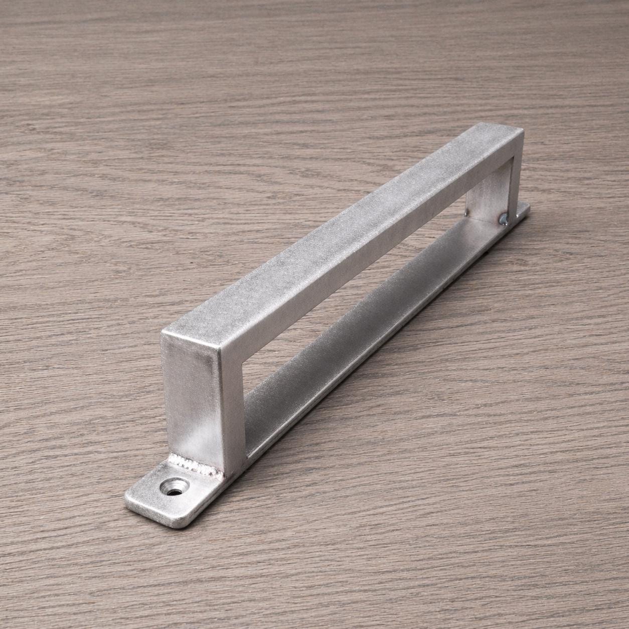 A tough, industrial style pull without the extra bulk of a traditional barn door handle.