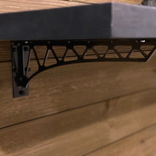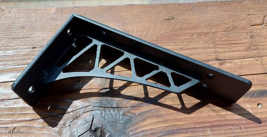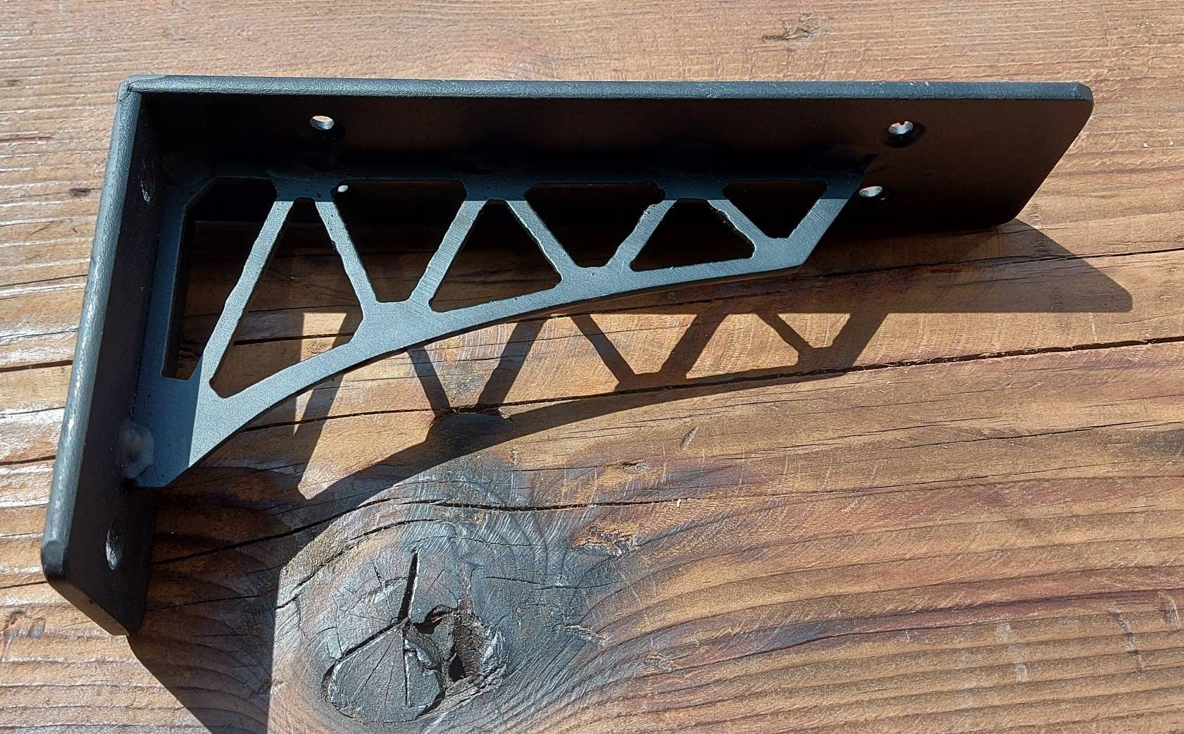 These truss shelf brackets have plasma cut pockets for strength and lightness. Perfect for industrial-style decor, add a hint of steampunk to your space!