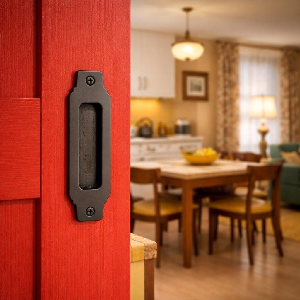 These closed-back, recessed steel handles are a perfect complement to our 1" and 1 1/4" Barn Door Handles. Just mount them onto the other side of a rolling loft door for a complete, industrial look!