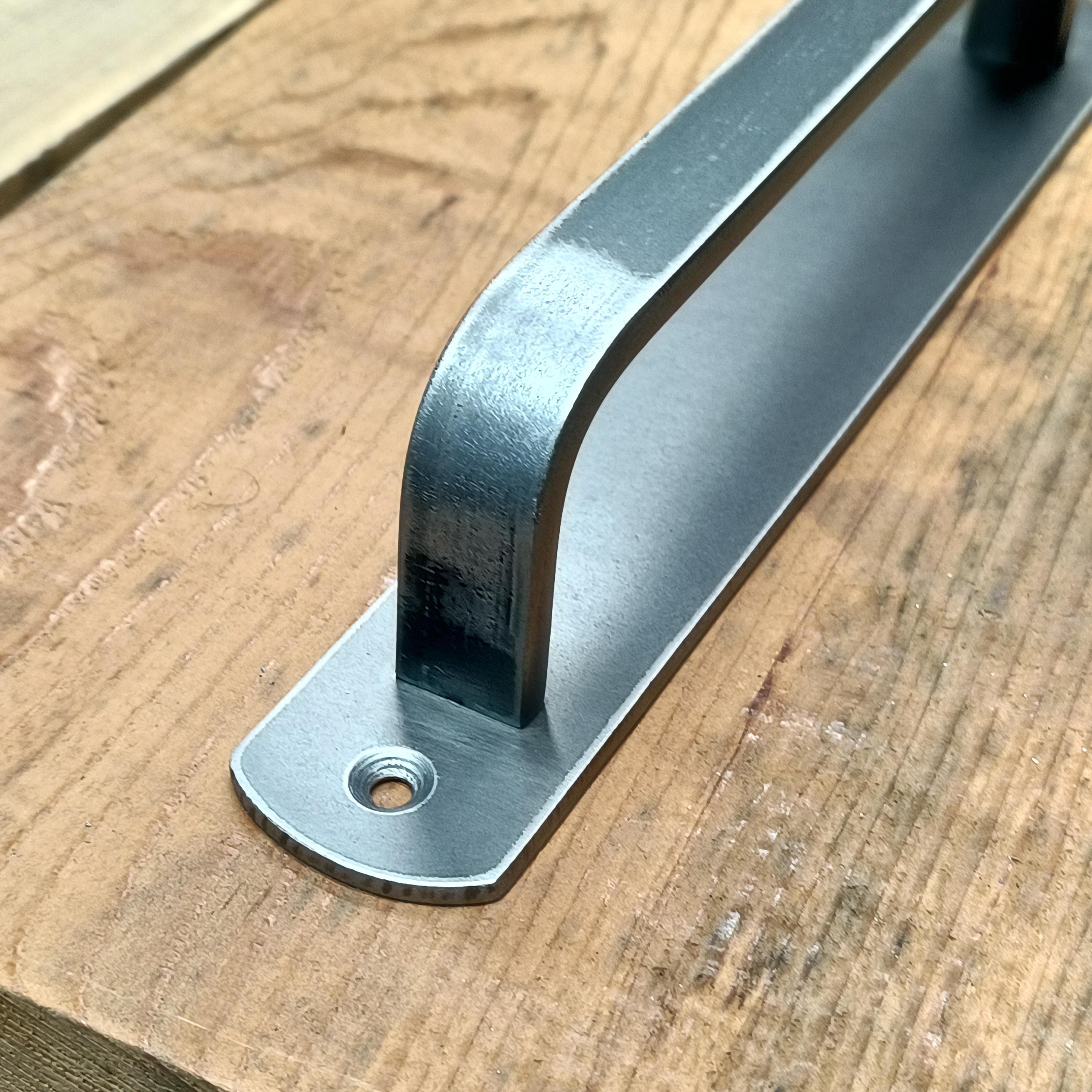 Barn Door Handle - Elegant French Door Design - 3/4" x 1/4" Rectangle Steel on 2" Backing Plate - Loft Door Pull, Industrial Door Knob 10" - 20"