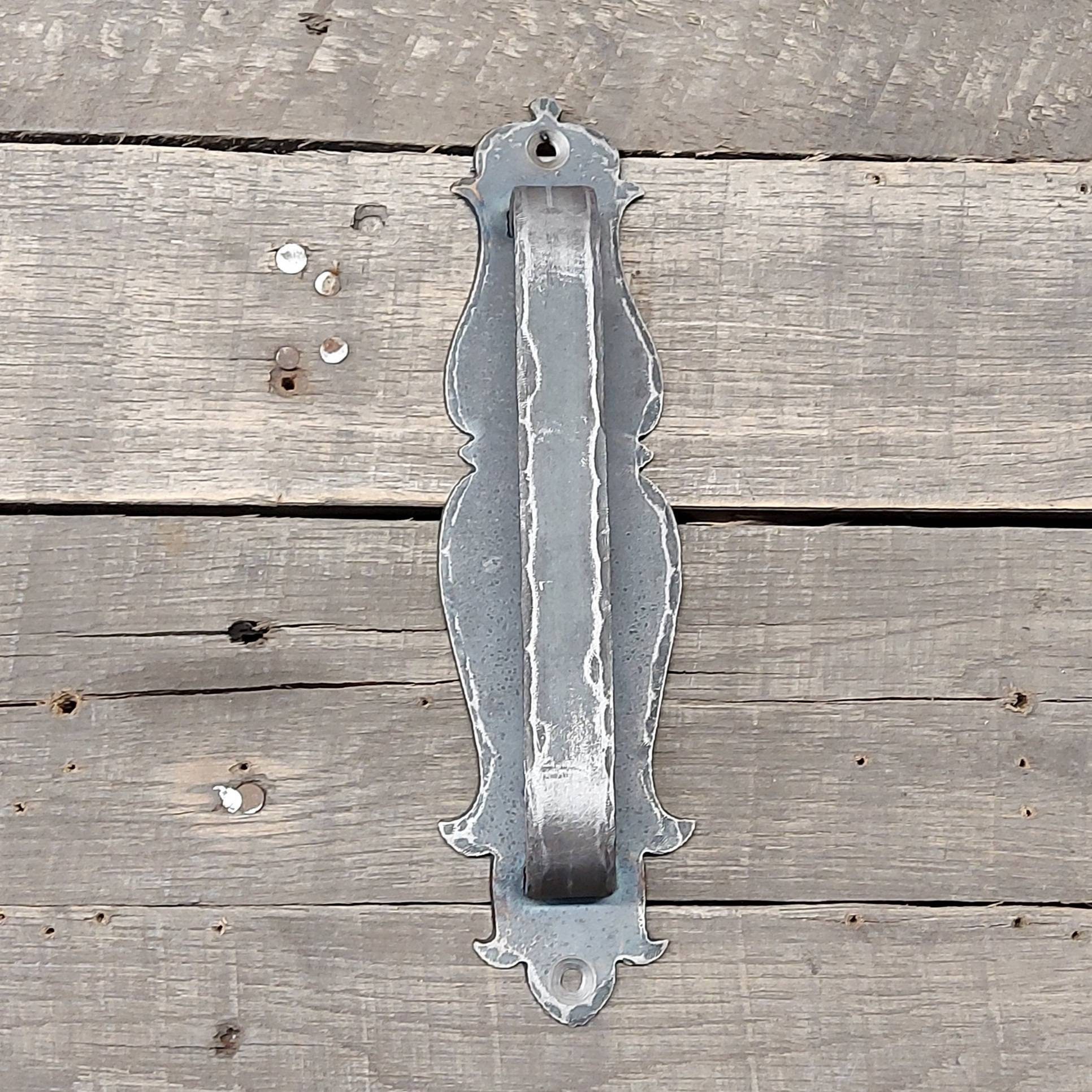 1600s English Style Barn Door Handle - 3/4" x 1/4" Rectangle Steel on 2 1/2" Backing Plate - Loft Door Pull, Industrial Door Knob 10" - 20"